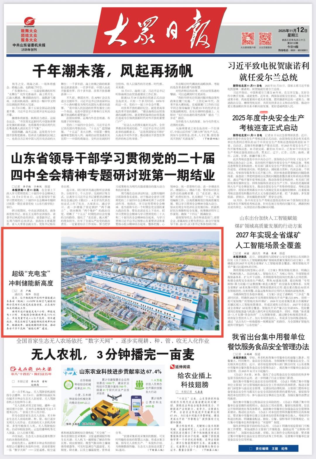 11月12日,头版刊发《超级“充电宝”冲刺储能新高度》,报道中国能建山东泰安(肥城)350MW压缩空气储能创新示范项目已经完成设备安装,正在进行相关的调试工作。详情请点击这里—