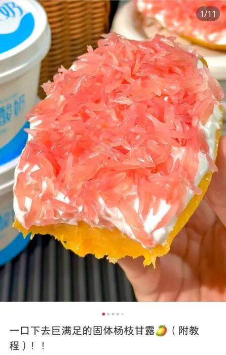 网友在社交平台晒出的“固体杨枝甘露”。 截图自社交平台
