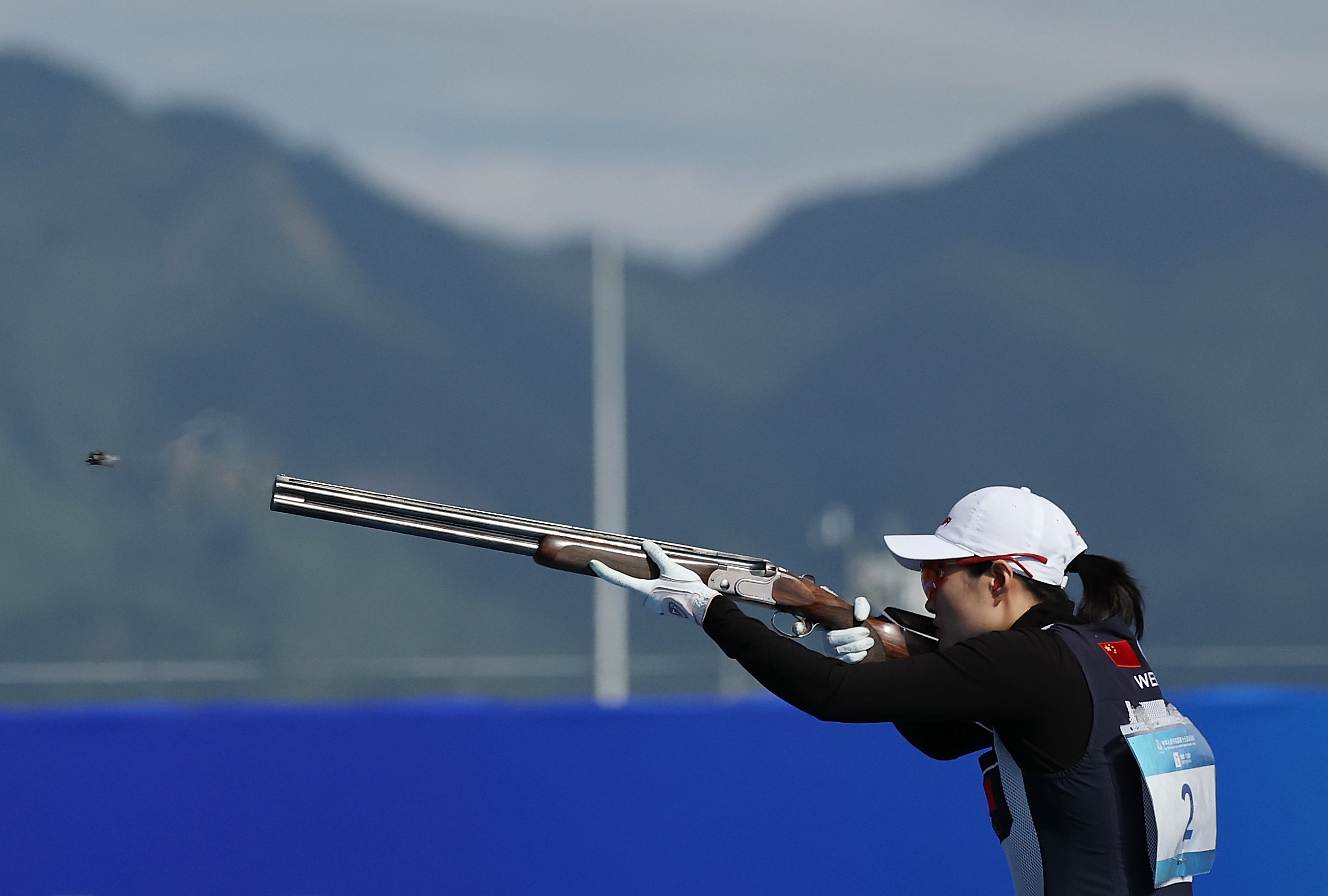 11月14日下午,十五运会射击飞碟项目女子双向个人决赛在广州举行。山东队的魏萌在决赛中打出60靶55中的成绩,仅落后冠军一中,获得这个项目的亚军。