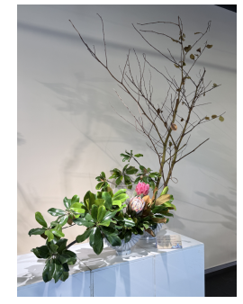 当提起此次传统插花展的主题时,策展人倪贵美表示,“大美”代表着包容一切美好事物。从插花流派到技巧范式,再到不同插花手法的融合,参展者在不同的插花风格间来回转换,目不暇接。“有花艺师选用隋朝的佛教插花艺术,以一根枝条为主体,配以两三支花朵与叶片,显出古典禅意;也有花艺师采取阶梯、对称、重复等手法,用最简约朴素的花艺手法呈现趣味十足的作品。还有将中西插花结合的花艺作品,花艺师以中式、西式两种手法各制成一个作品,二者再摆放在一起成为一组完整的作品……最初创作时只是一种新鲜的尝试,但没想到最终的呈现效果竟如此协调、美丽。”布展人之一、花艺师李甜甜说。