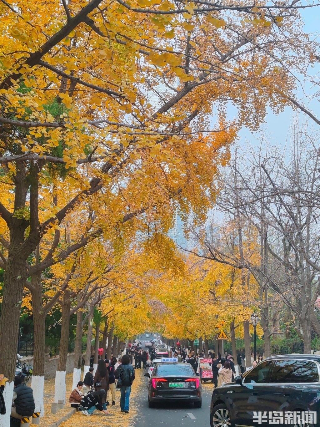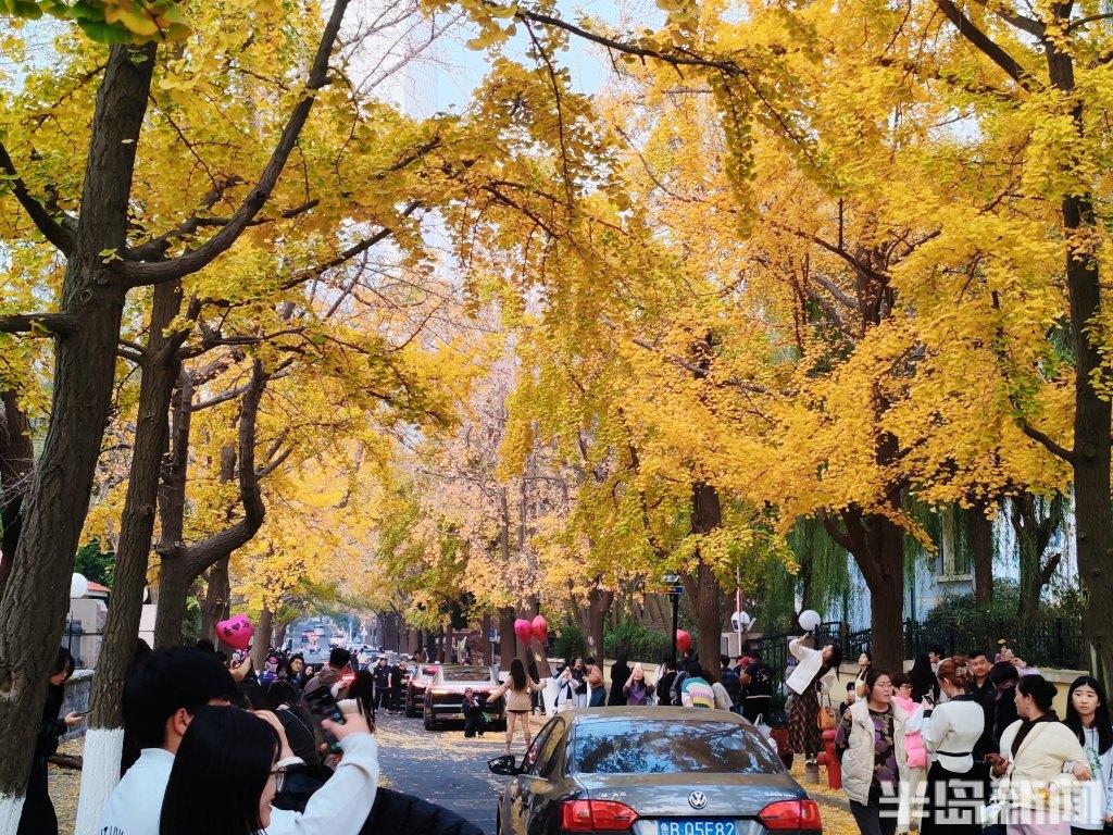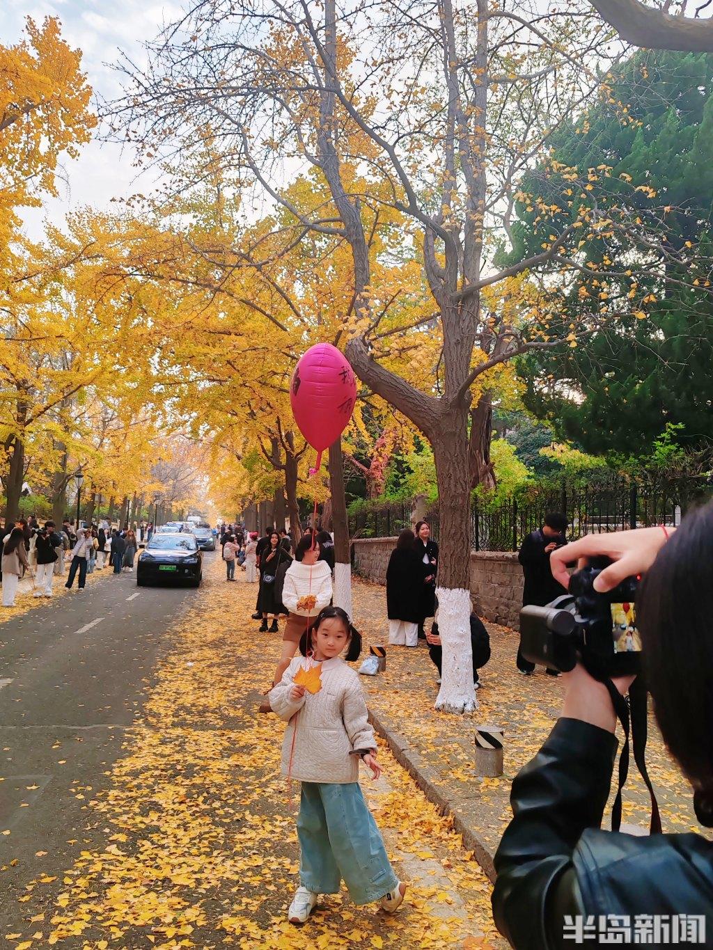 根据天气预报,岛城近日将出现大风降温天气,人们在这些叶子落之前,趁着周末来拍照打卡。