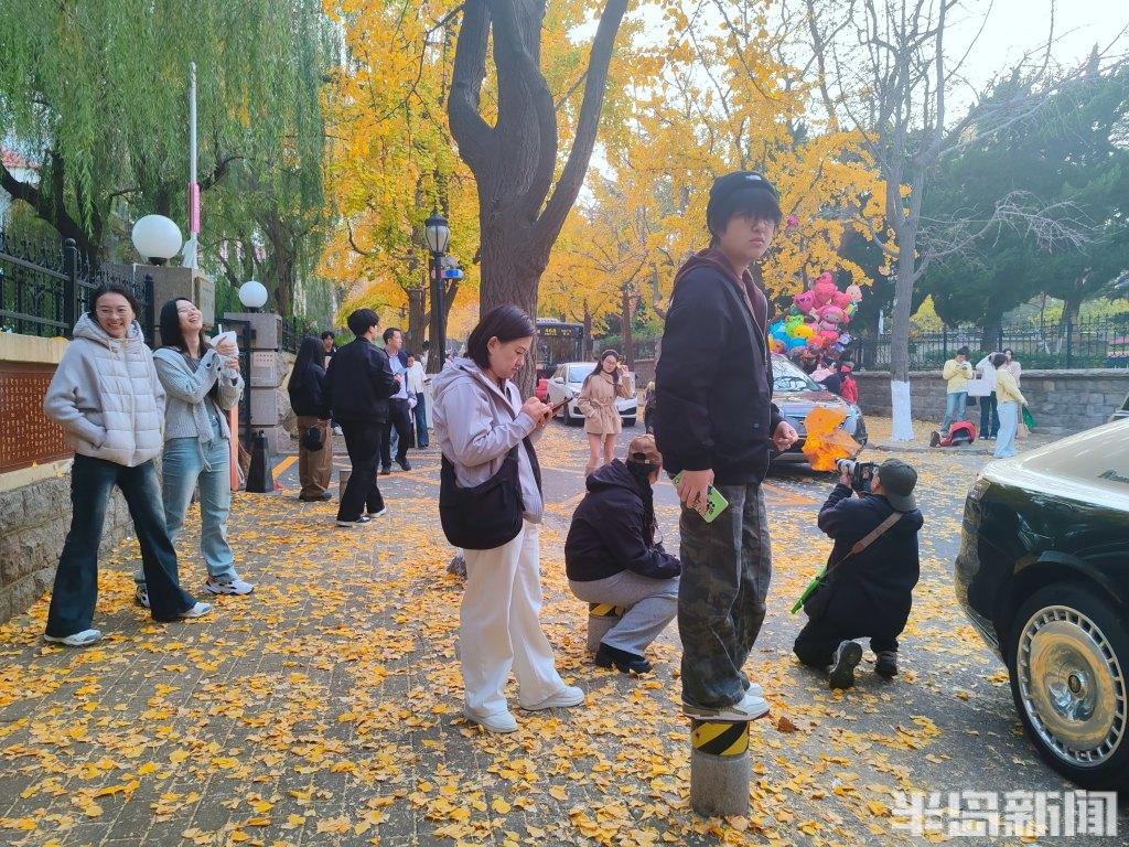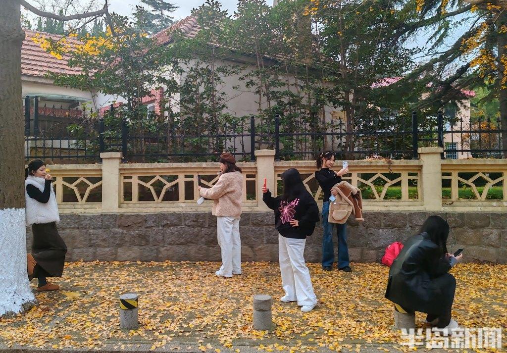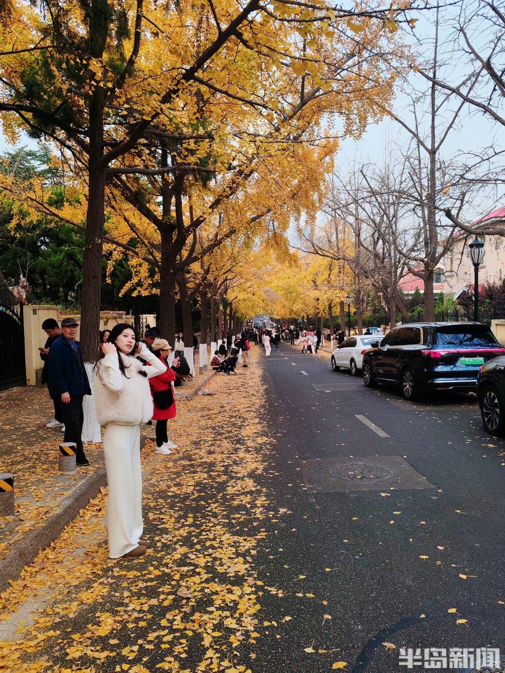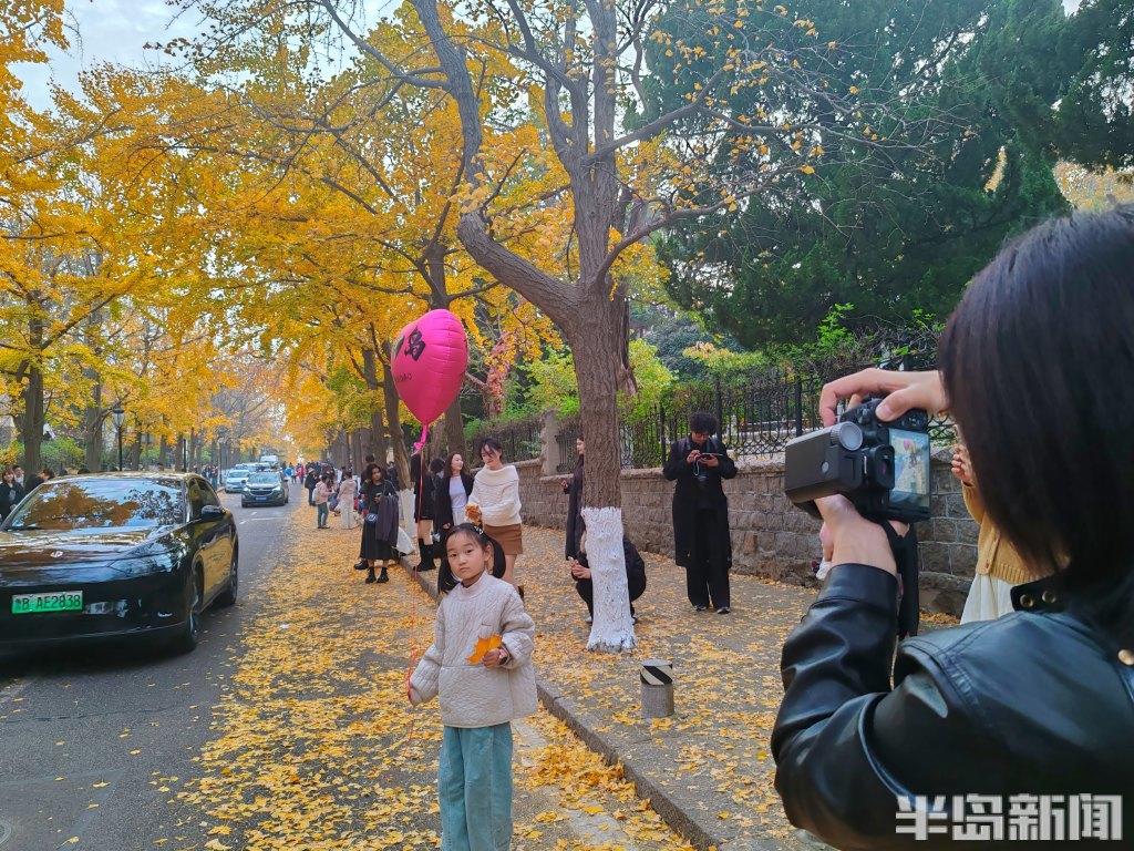 根据天气预报,岛城近日将出现大风降温天气,人们在这些叶子落之前,趁着周末来拍照打卡。