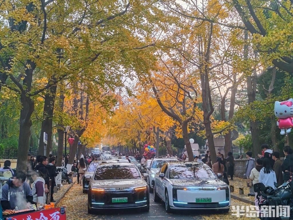 11月15日,在太平角景区内的湛山三路,道路两侧的银杏树上的叶子“染”成了金黄色,吸引了众多市民及游客利用周末前来赏叶景、拍照打卡,整条道路人流、车流扎堆聚集,俨然是一条赏叶街区。