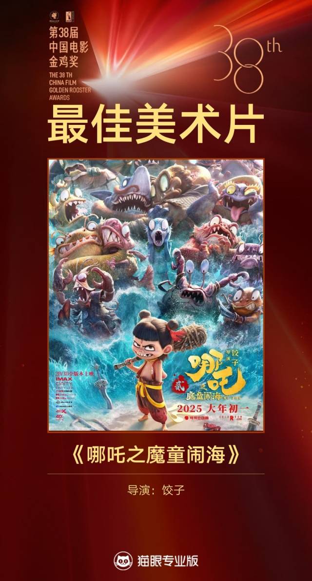 《哪吒之魔童闹海》获得最佳美术片奖。自1月29日上映以来,该片全球累计票房超159亿元,位列全球影史票房榜第5,是排名前10的影片中唯一一部亚洲影片。截至6月30日,该片在中国内地累计票房达154.45亿元,总观影人次达3.24亿,共打破113项纪录,获得308项里程碑成就,主要成就包括中国影史票房榜冠军、中国影史观影人次冠军、全球影史动画片票房榜冠军等。