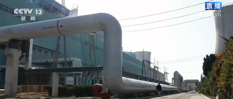 这里是山东泰安肥城的一处热电厂区外的一段供汽管道,这里产生的热能供应着泰安肥城的市区和隔壁济南市大约十分之一地区的供暖任务。管道正不断冒出白色的蒸汽,这意味着供热系统正在运行。记者在距离这段管道两三米的距离,伸出手已经能感受到阵阵热浪。