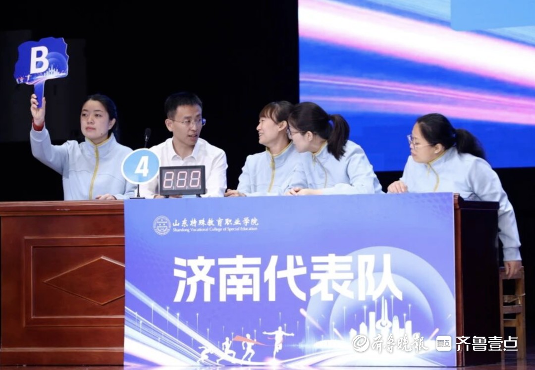 这场团体赛在山东特殊教育职业学院礼堂举行,设置必答、抢答、风险等多个环节,从初赛中脱颖而出的八支队伍同台竞技,充分展现专业智慧与临场应变能力。