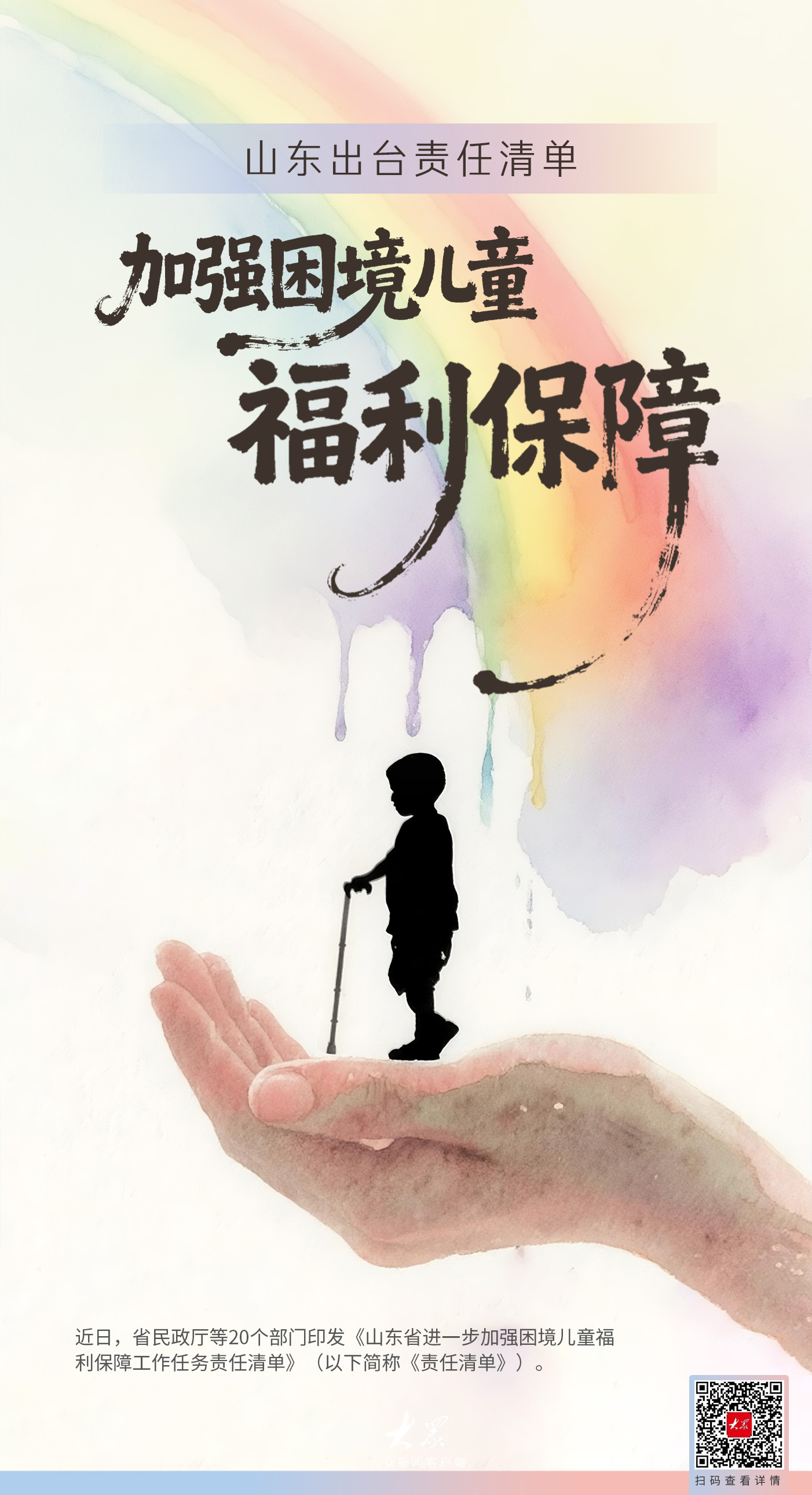 近日,省民政厅等20个部门印发《山东省进一步加强困境儿童福利保障工作任务责任清单》。