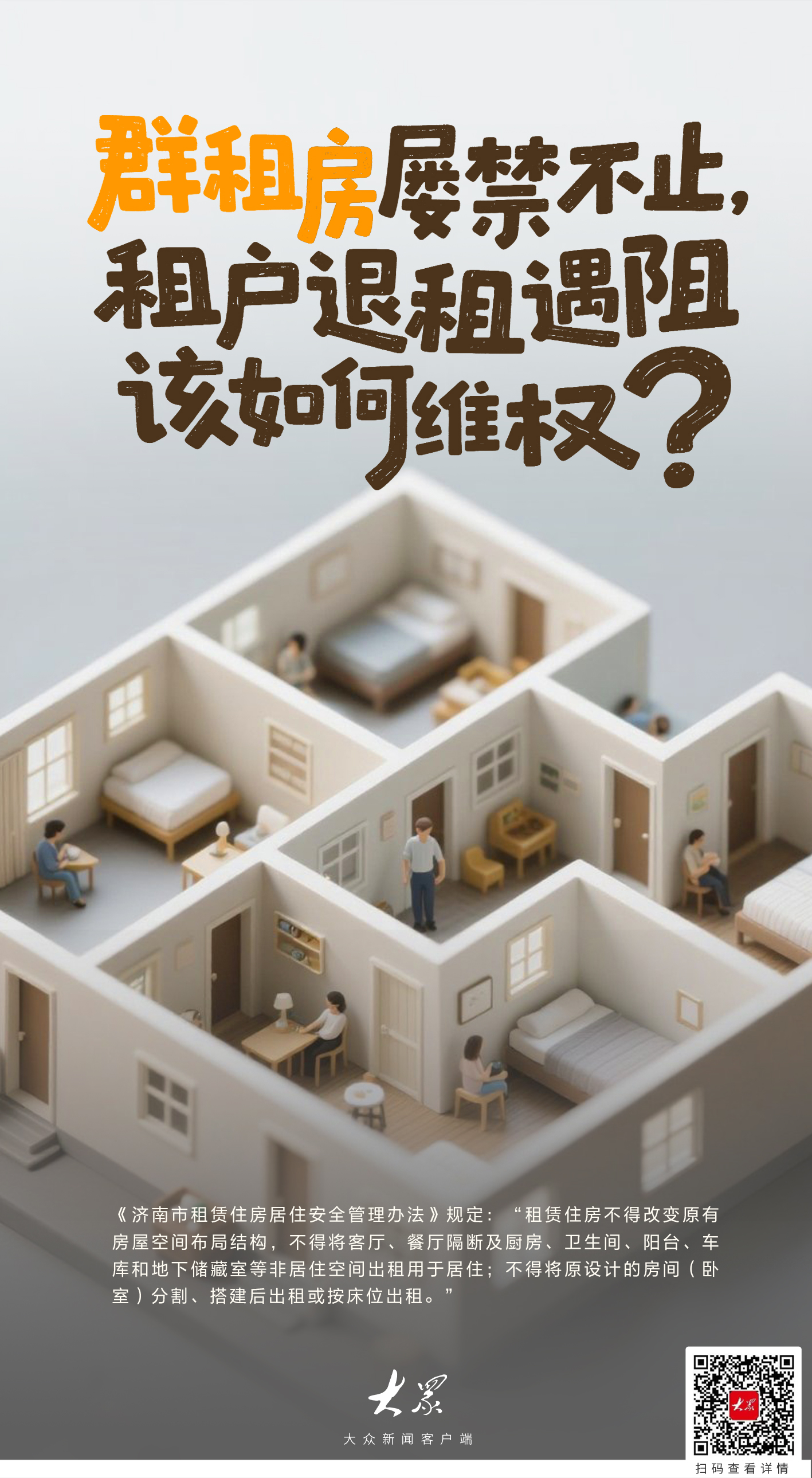 近日,网友“布灵布灵”在大众新闻客户端“领导留言板”留言反映:自己租住的济南市历下区中建星光城市的房子,疑似被济南润德公寓管理有限公司(以下简称“润德公寓”)非法改造为“群租房”进行出租。