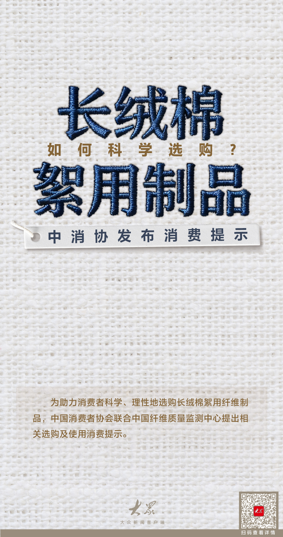 为助力消费者科学、理性地选购长绒棉絮用纤维制品,中国消费者协会联合中国纤维质量监测中心提出相关选购及使用消费提示。