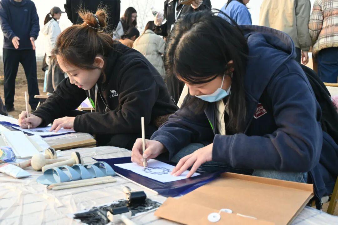 实践体验区打造仿真考古学发掘及后期修复场景,是“田野”游园会活动的核心亮点。在模拟发掘区,参与者化身“考古工作者”,手持手铲、毛刷等专业工具,在探方内小心翼翼地“寻踪觅迹”,亲身感受考古发掘所需的细致与耐心。在体验区,参与者亲手触摸、观察、拼接起一片片斑驳的陶片,在陶器修复中感受考古工作者如何“以小见大”;他们俯身于器物拓印区,将宣纸轻覆于仿制的焦家典型陶器之上,轻敲慢拓,使菱形纹、漩涡纹等纹样跃然纸上,复刻千年印记;而在黏土制模区,他们比对出土陶器图片,捏塑成形,以亲手创作体会先民审美与智慧,传承历史记忆。