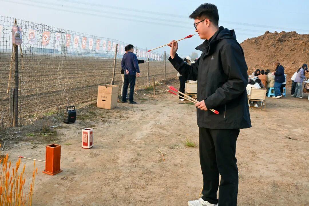 活动最后的文创兑换环节以文化回馈为核心,搭建活动与参与者的情感联结桥梁。参与者将前两个环节收集到的“田野”主题贴纸,兑换融入焦家遗址文物元素的文创产品。同时,现场设置了投壶、古诗词飞花令等传统文化体验项目,使参与者在动态文化体验中,感受古代礼仪与生活雅趣。