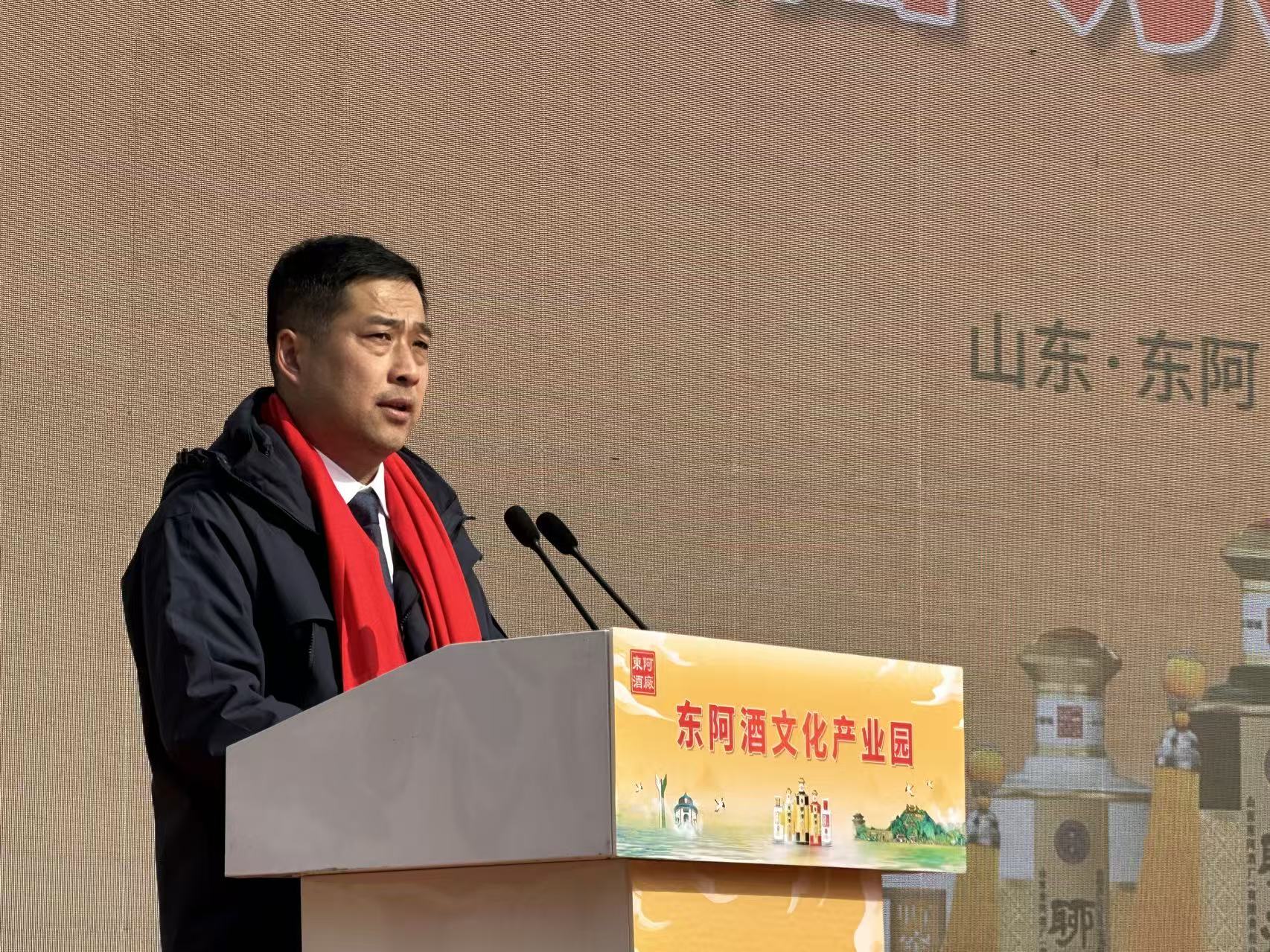 东阿县人民政府党组成员、副县长张强致辞称,东阿孕育了仓颉、曹植等名人文脉,七十二面琉璃井的优质水源与千年酿酒技艺交融,让东阿酒成为曹植文化与两河文化的鲜活载体。