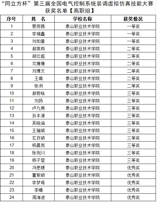 奖项20+!泰山职业技术学院在第三届全国电气控制系统装调虚拟仿真技能大赛获优异成绩