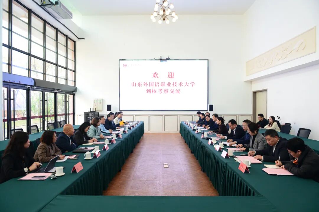 11月14日,山东外国语职业技术大学与山东职业学院校际共建合作签约仪式在山东职业学院5号教学楼中心会议厅启幕。山东职业学院党委书记赵凤文,党委副书记、院长郭培谦,党委委员、副院长王绍军等领导班子成员出席活动;山东外国语职业技术大学董事长拜文汇、党委书记郭善利、校长杜琳等一行11人应邀到访。仪式由山东职业学院党委委员、副院长张少飞主持。两校以此次签约为纽带,正式开启优势互补、协同共进的职教高质量发展新篇章。