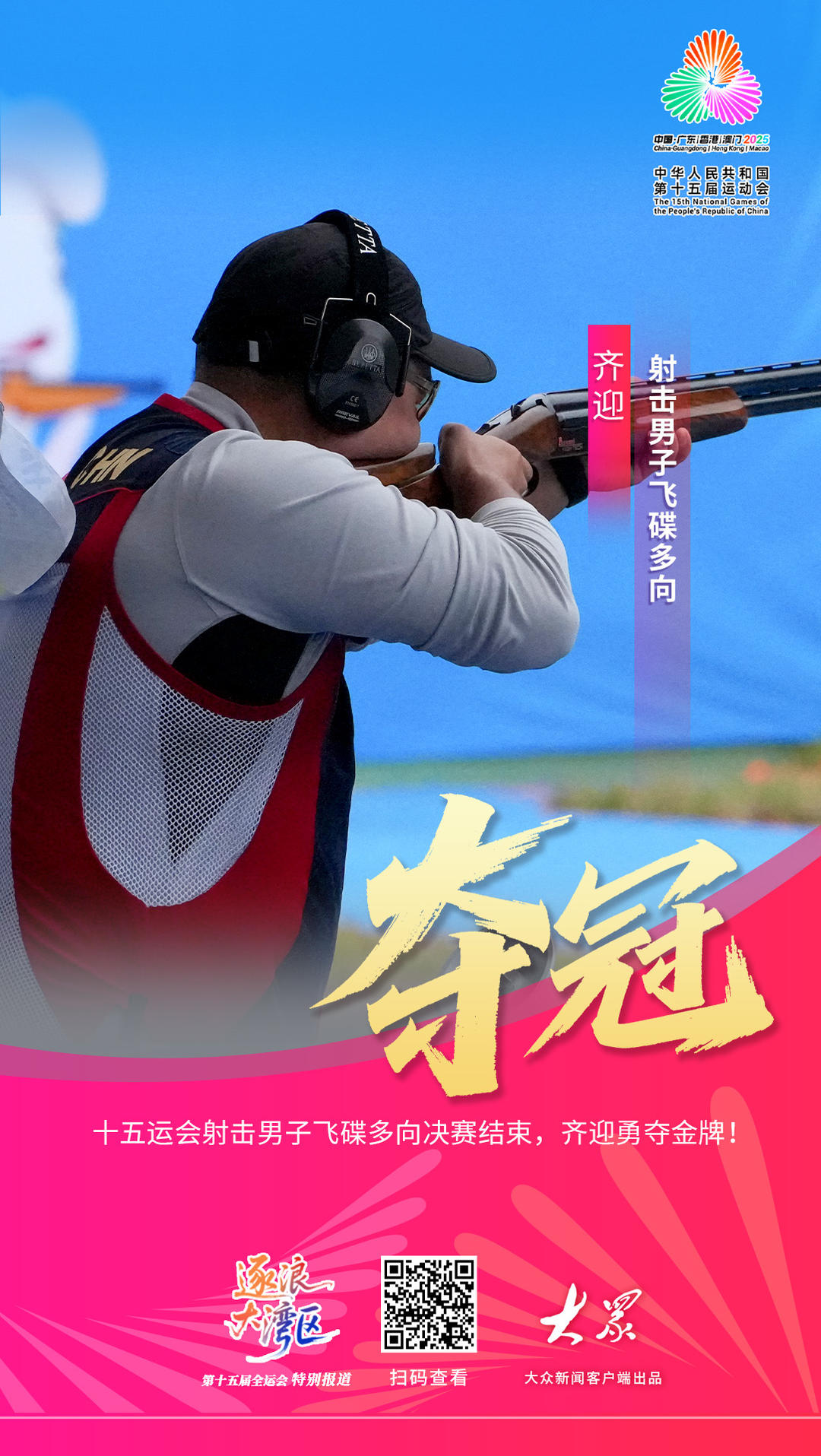齐迎夺得射击男子飞碟多向金牌