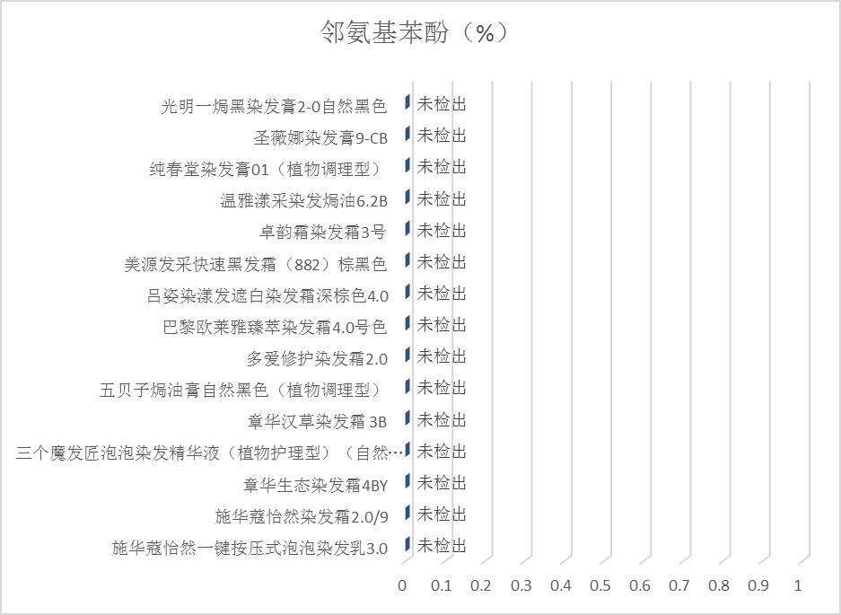 2.检测结果:15款产品中均未检出邻氨基苯酚,结果见图7。