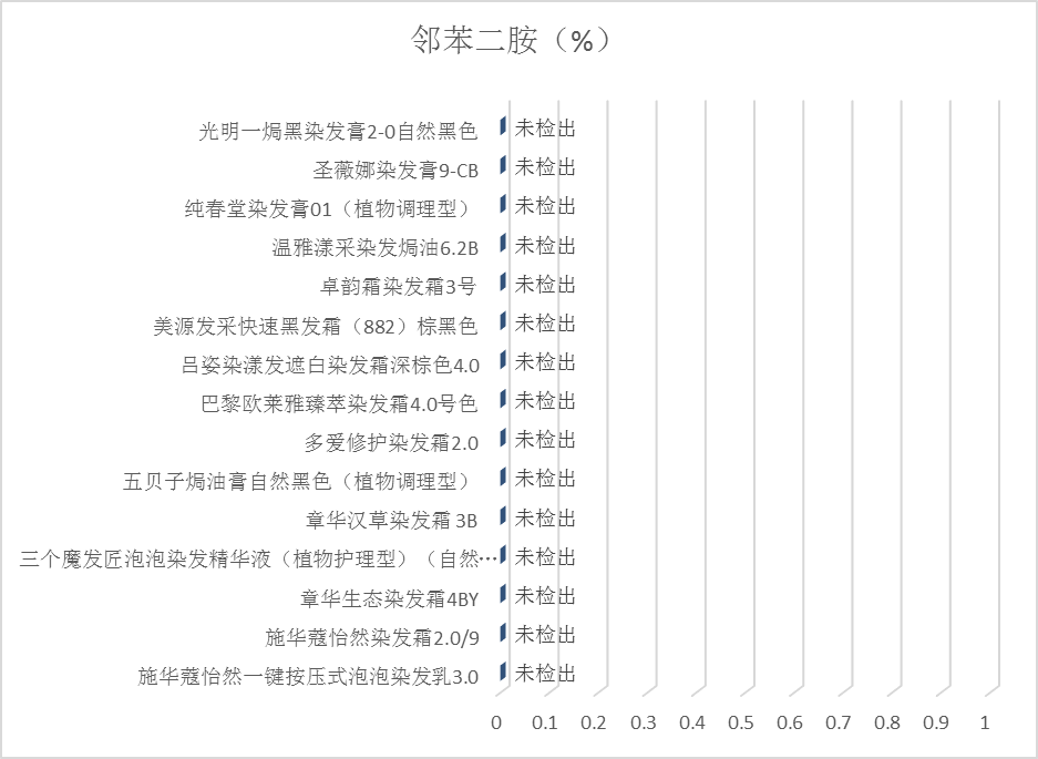 1.成分风险:依据《规范》,邻苯二胺已被列为化妆品禁用物质,严禁在染发剂等化妆品中添加使用。