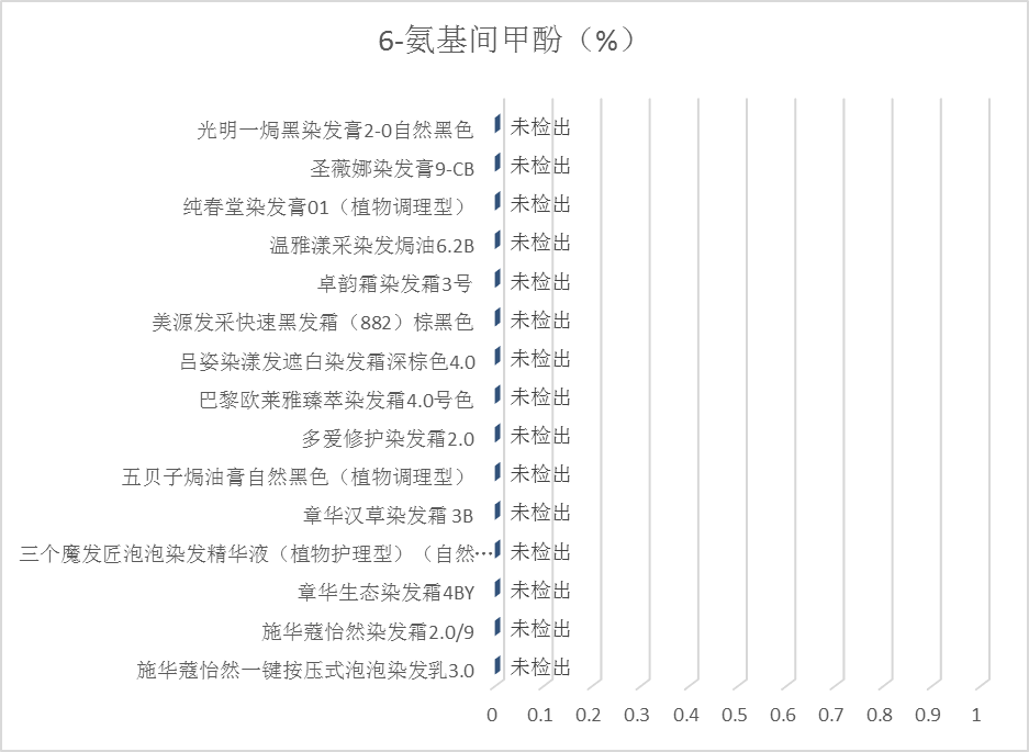4.检测结果:15款产品中均未检出6-氨基间甲酚,可能与检品样本量少有关,结果见图12。