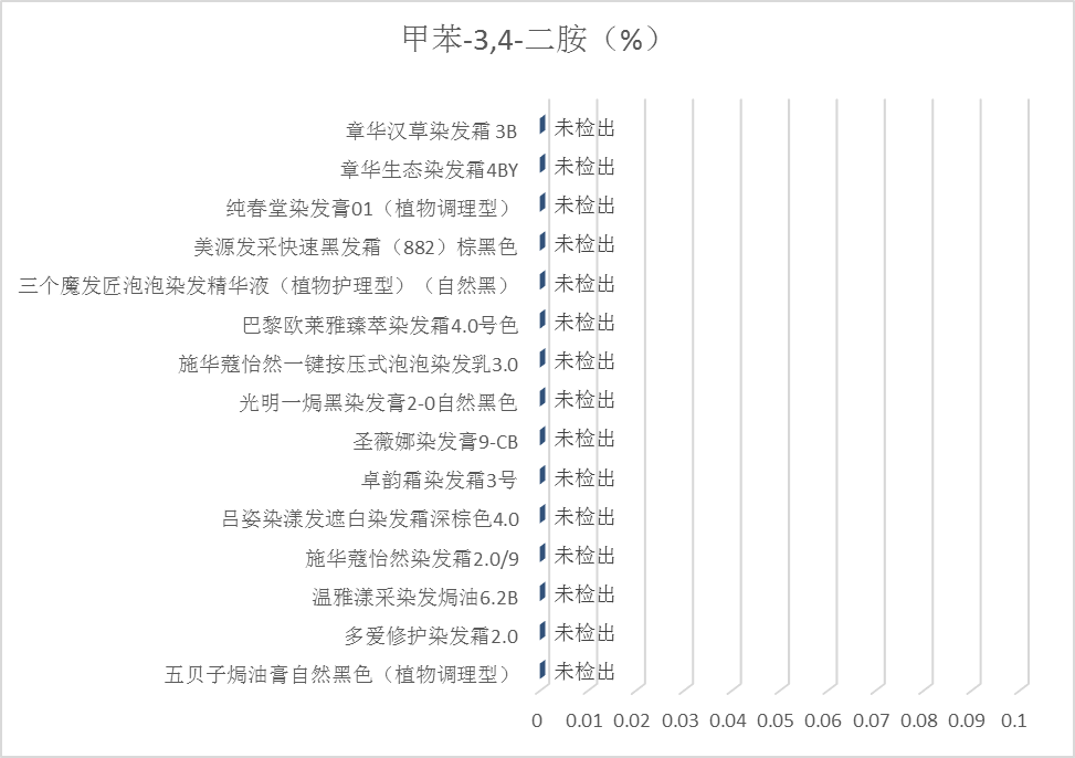 2.检测结果:15款产品中均未检出甲苯-3,4-二胺,结果见图9。