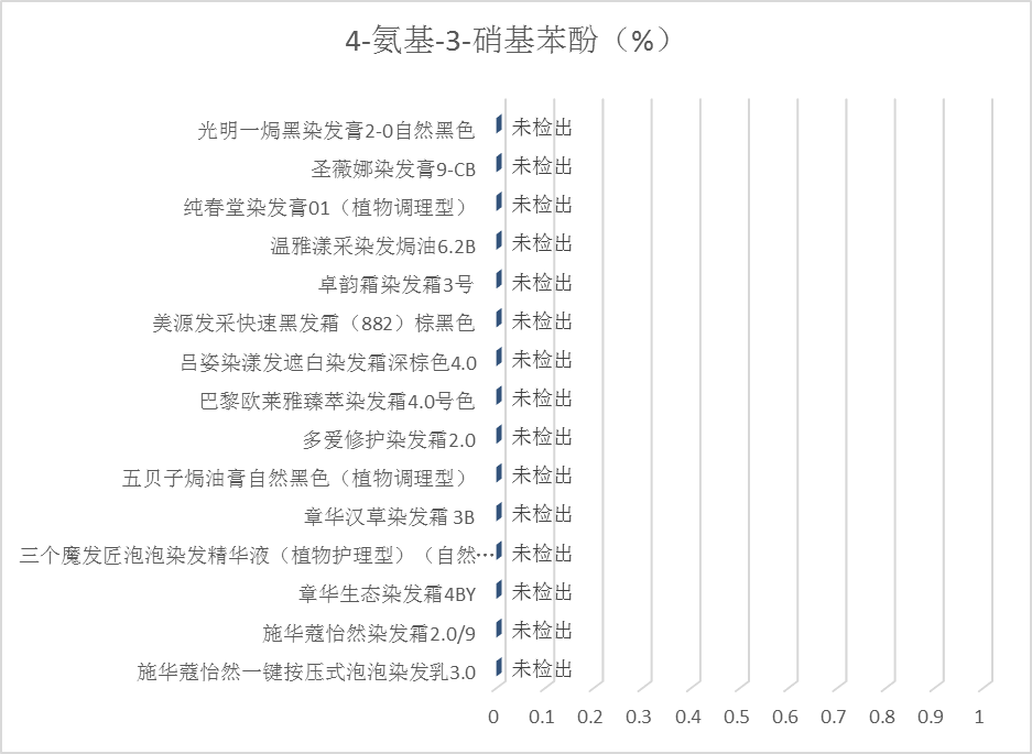 3.最大使用浓度:依据《规范》,在氧化型染发产品中,4-氨基-3-硝基苯酚的最大使用浓度为1.5%。