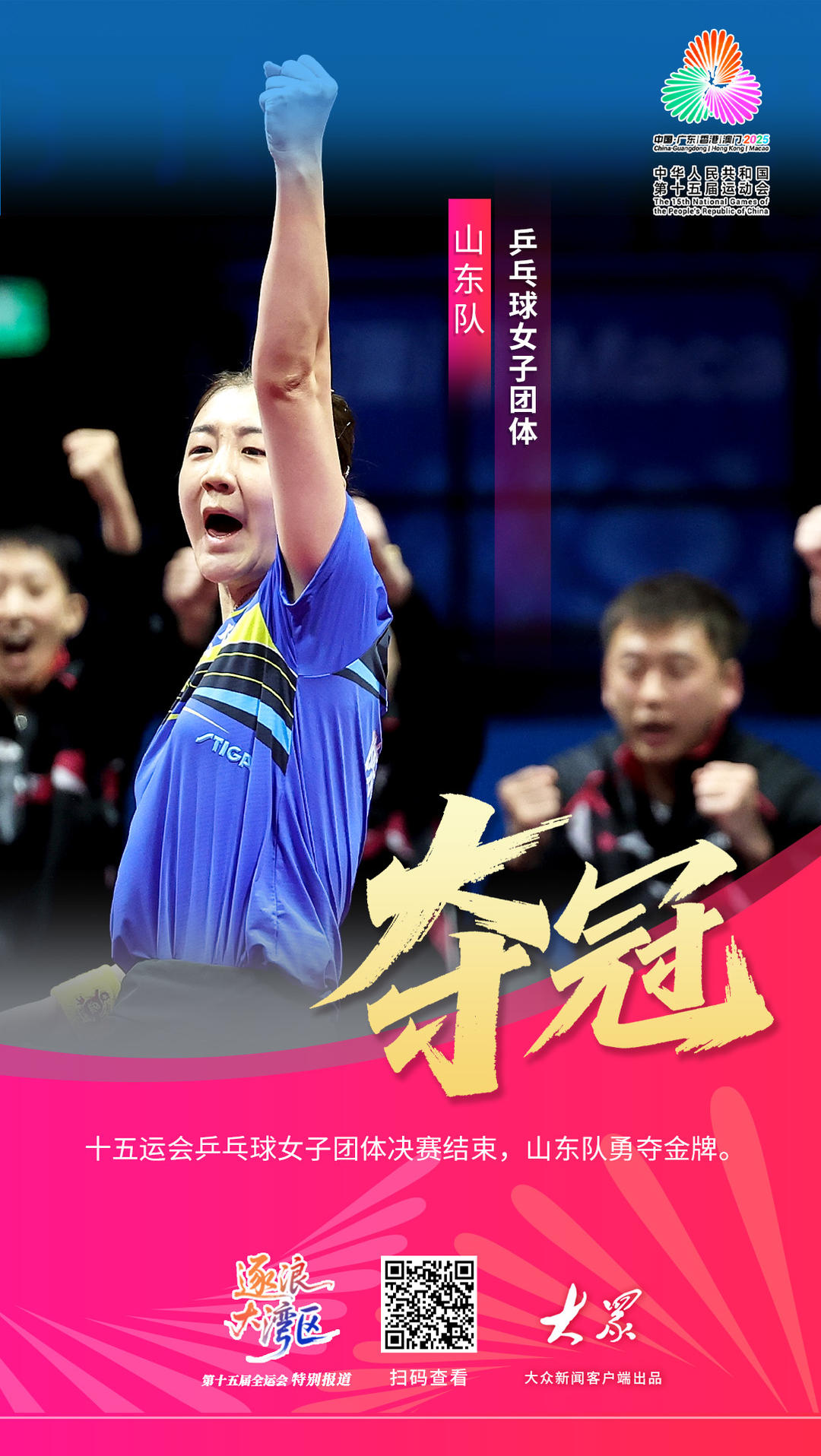 打满五场!山东队夺十五运乒乓球女子团体金牌