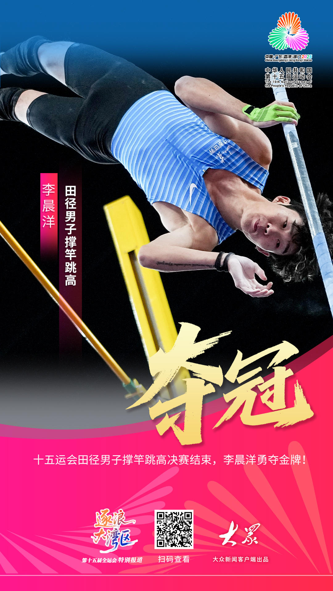 十五运会田径男子撑竿跳高决赛结束,李晨洋勇夺金牌!