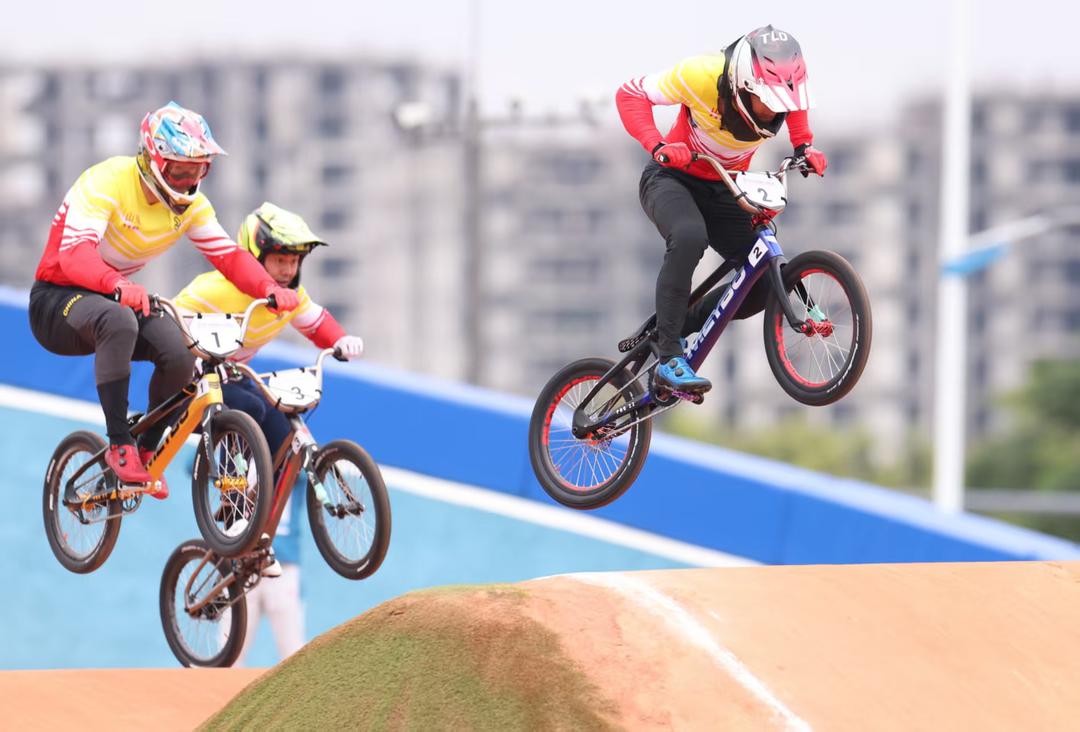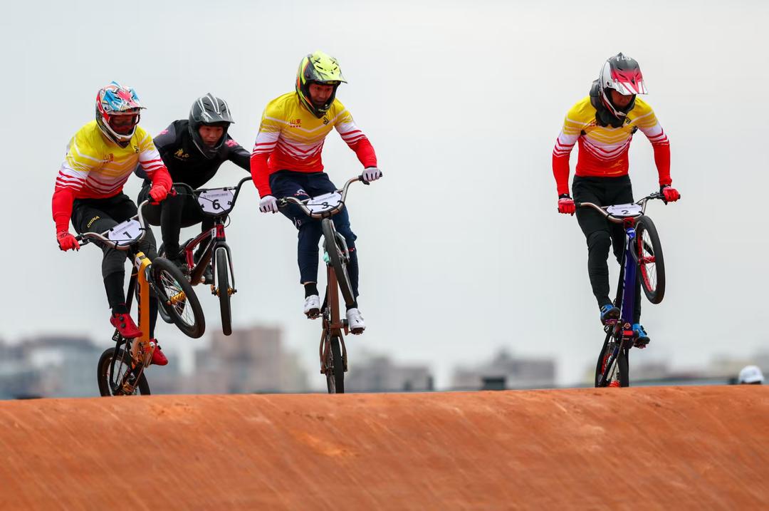 11月19日上午,第十五届全运会小轮车竞速赛在深圳市光明区竞速小轮车场开赛。