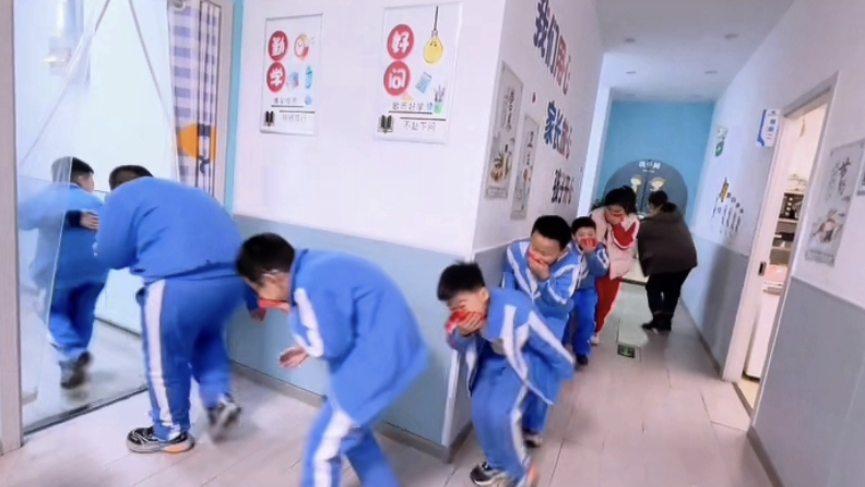 随着模拟警报声拉响,演练正式启动。在托管机构老师和网格员的指挥与引导下,孩子们迅速用湿毛巾捂住口鼻,弯腰低姿,沿着预定的疏散路线,紧张、有序、快速地从各个安全出口撤离至指定的室外安全区域。此次联合演练,不仅检验了托管机构应对突发事件的应急处置能力,更在孩子们心中播下了安全的种子,切实增强了他们的自我保护技能。