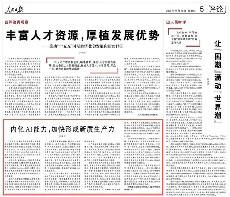 李彦宏《人民日报》撰文,提出内化AI能力“三步走”