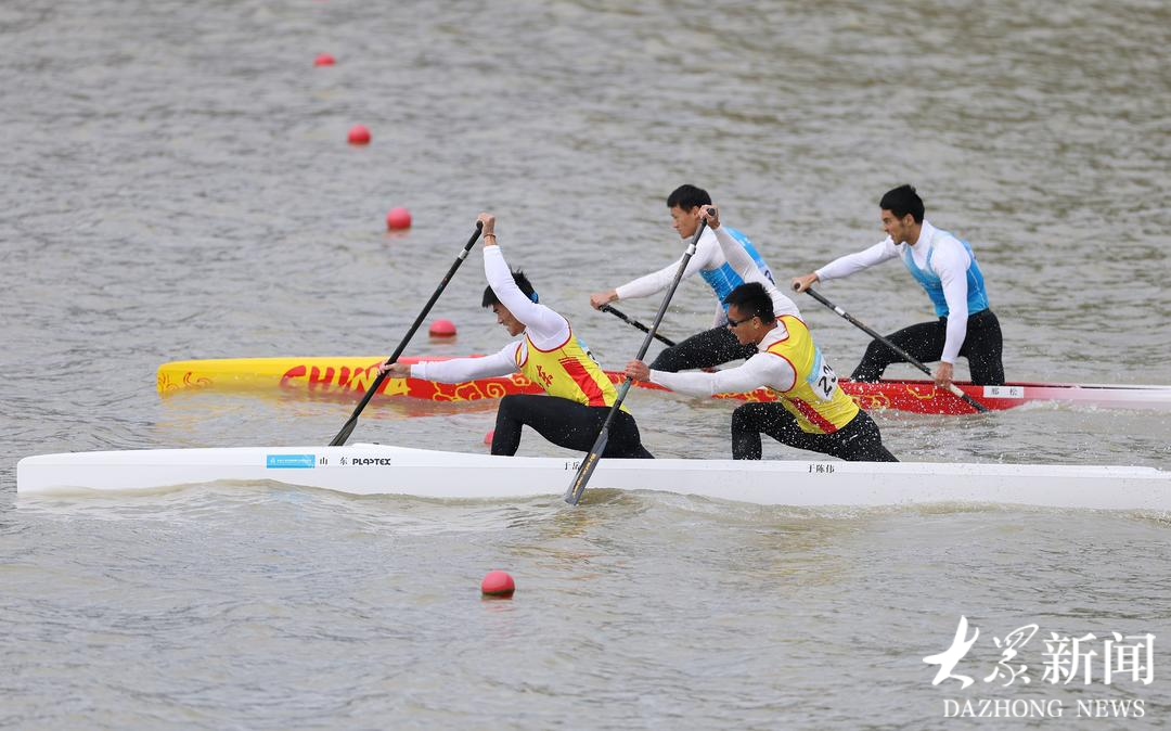 11月20日,广东国际划船中心,第十五届全运会皮划艇比赛决出最后一枚金牌,在男子1000米双人划艇决赛中,山东队于岳斌、于陈伟后来居上,险胜夺冠!