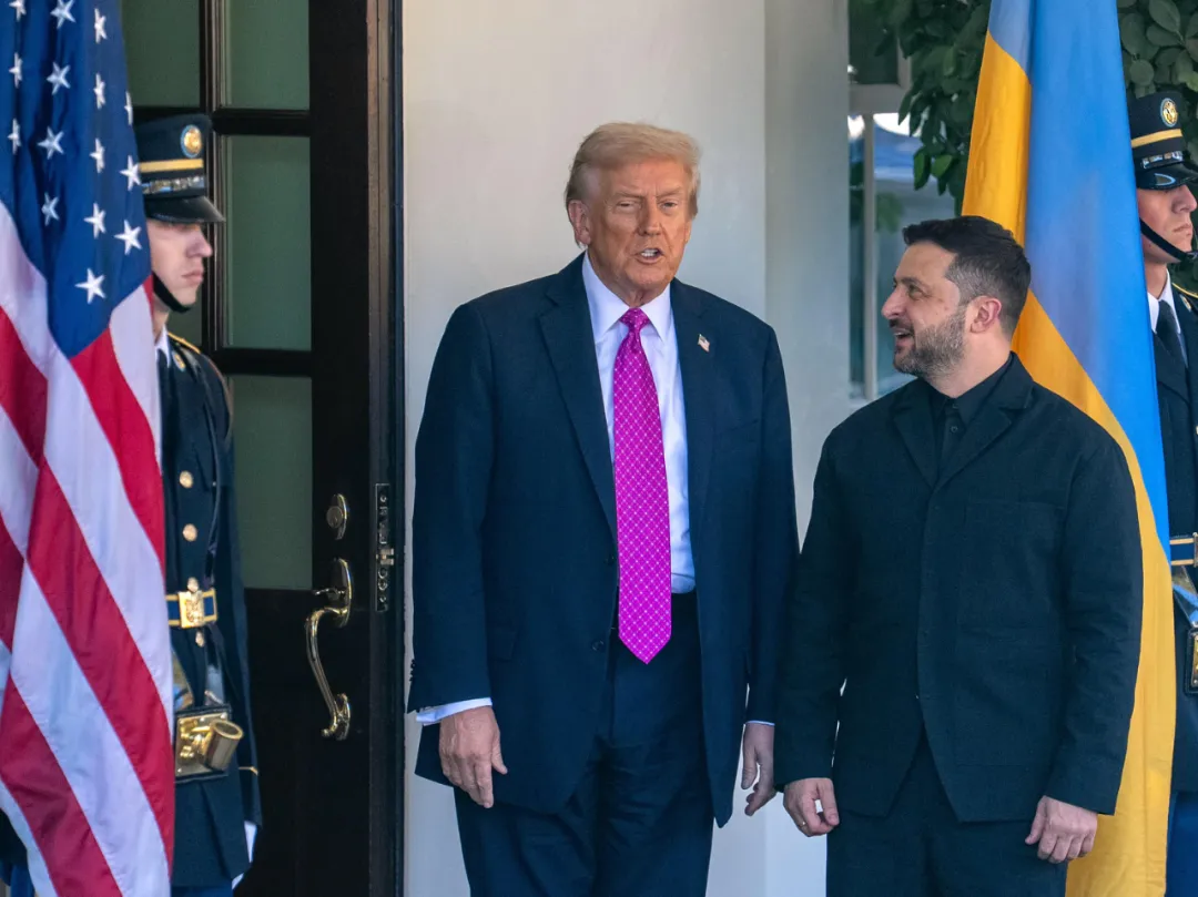 10月17日,在美国首都华盛顿白宫,美国总统特朗普(左二)欢迎乌克兰总统泽连斯基(左三)。新华社