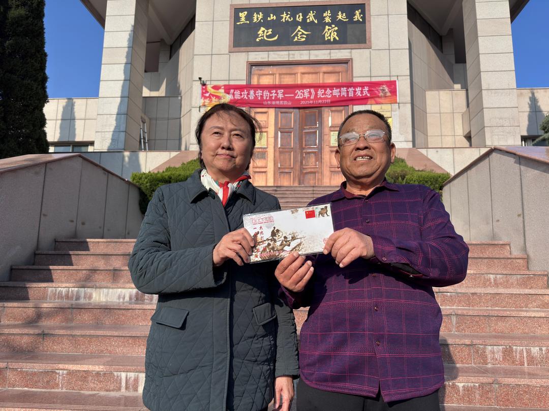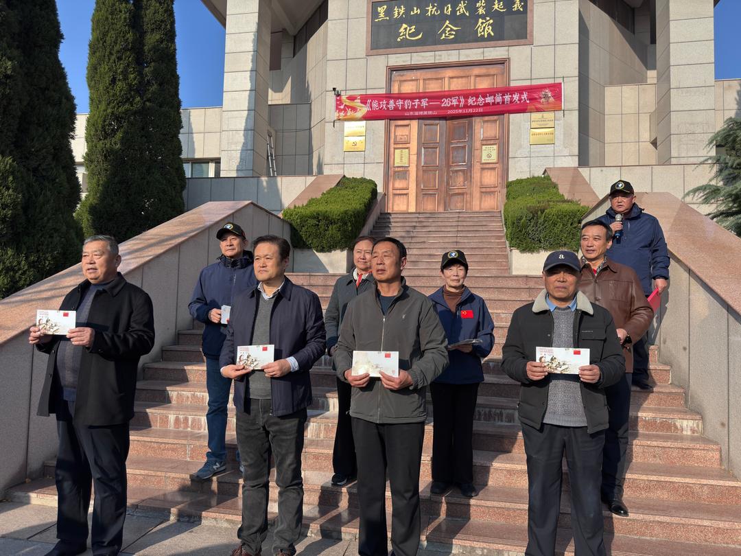 “当AR镜头扫过邮简,零下40度极寒中战士们浴血奋战的场景瞬间浮现……”11月22日,在淄博市黑铁山抗日武装起义纪念馆广场上,50余位26军后代及家属整齐列队,共同见证“能攻善守豹子军——26军”纪念邮简首发式隆重举行。
