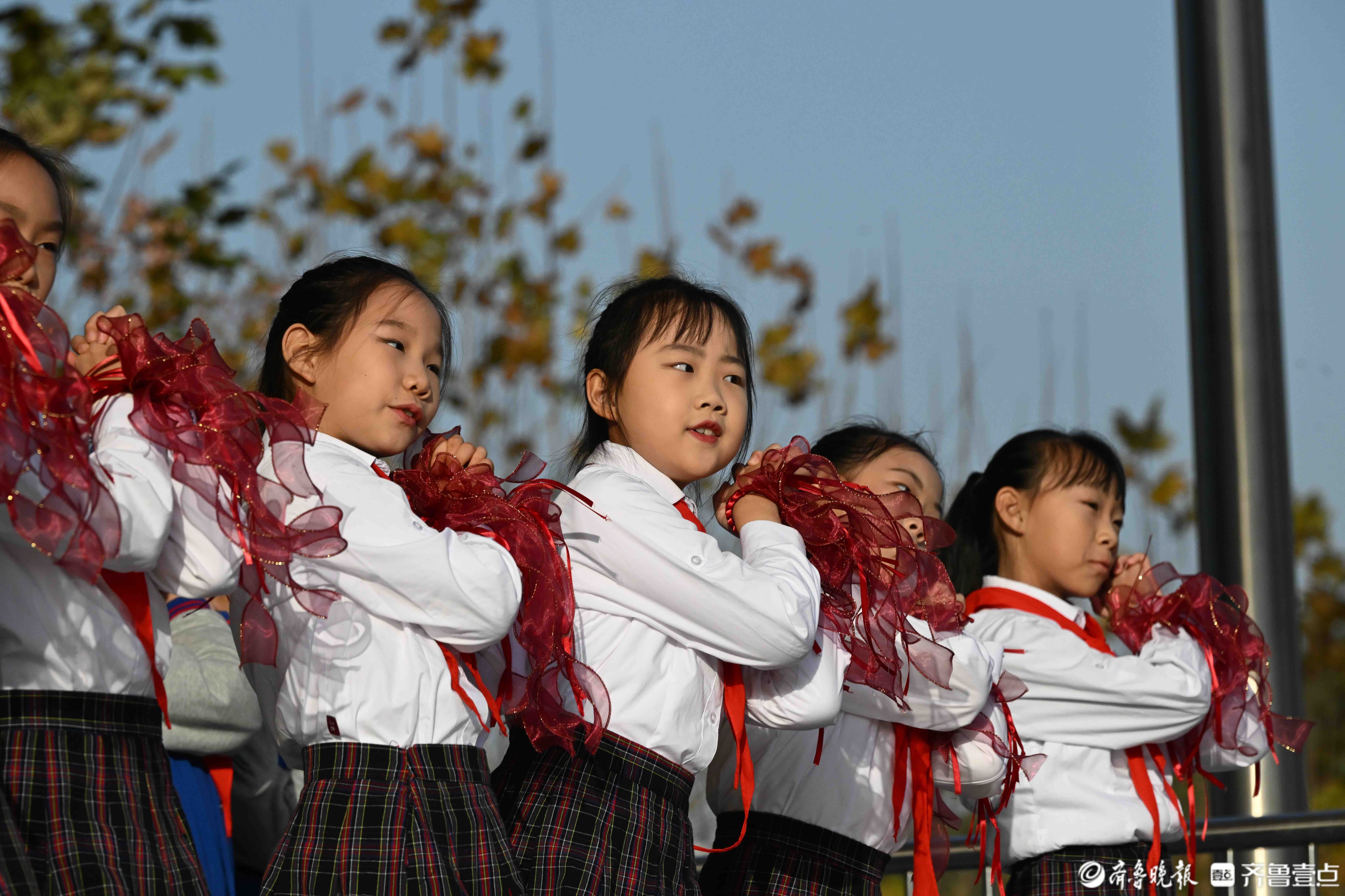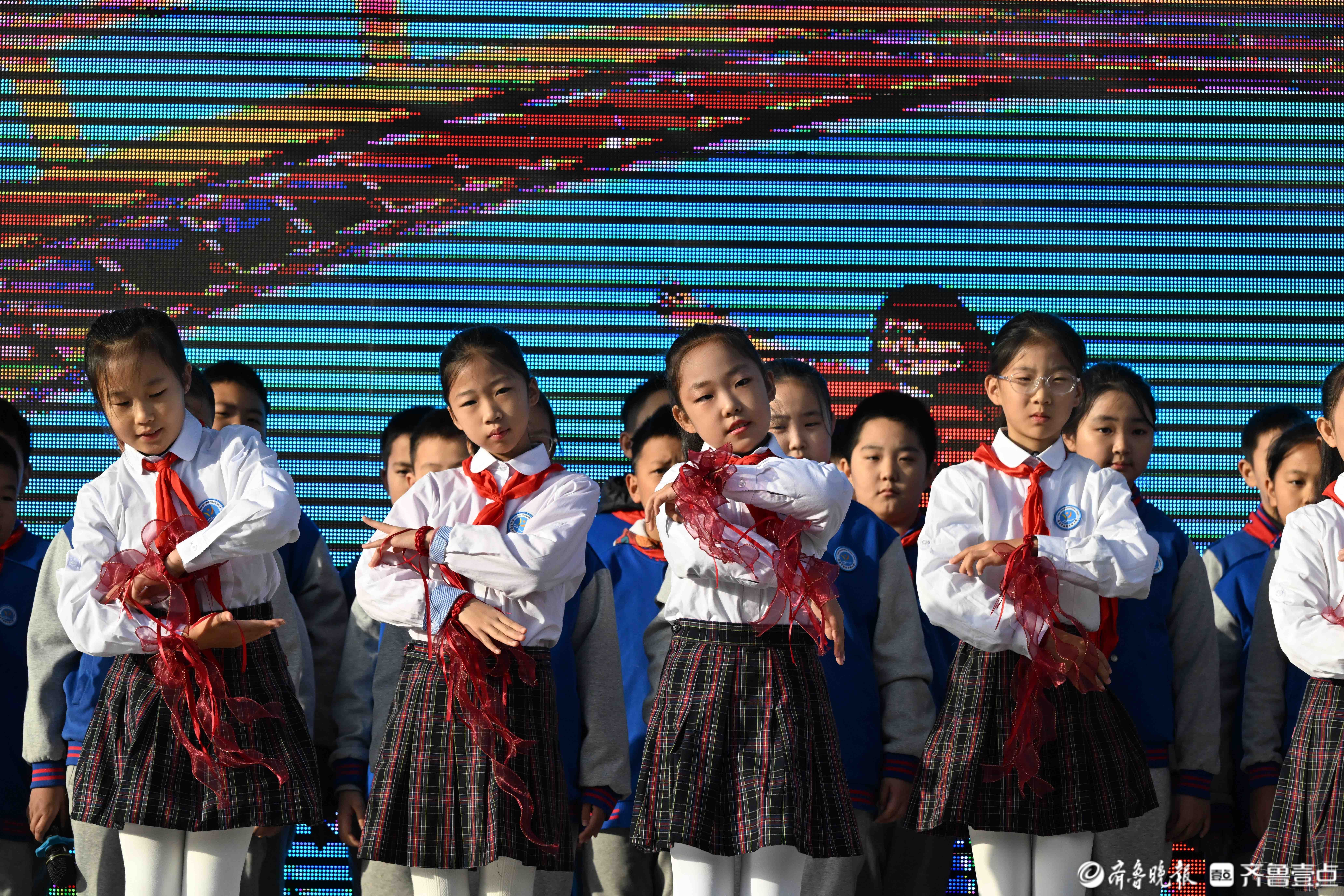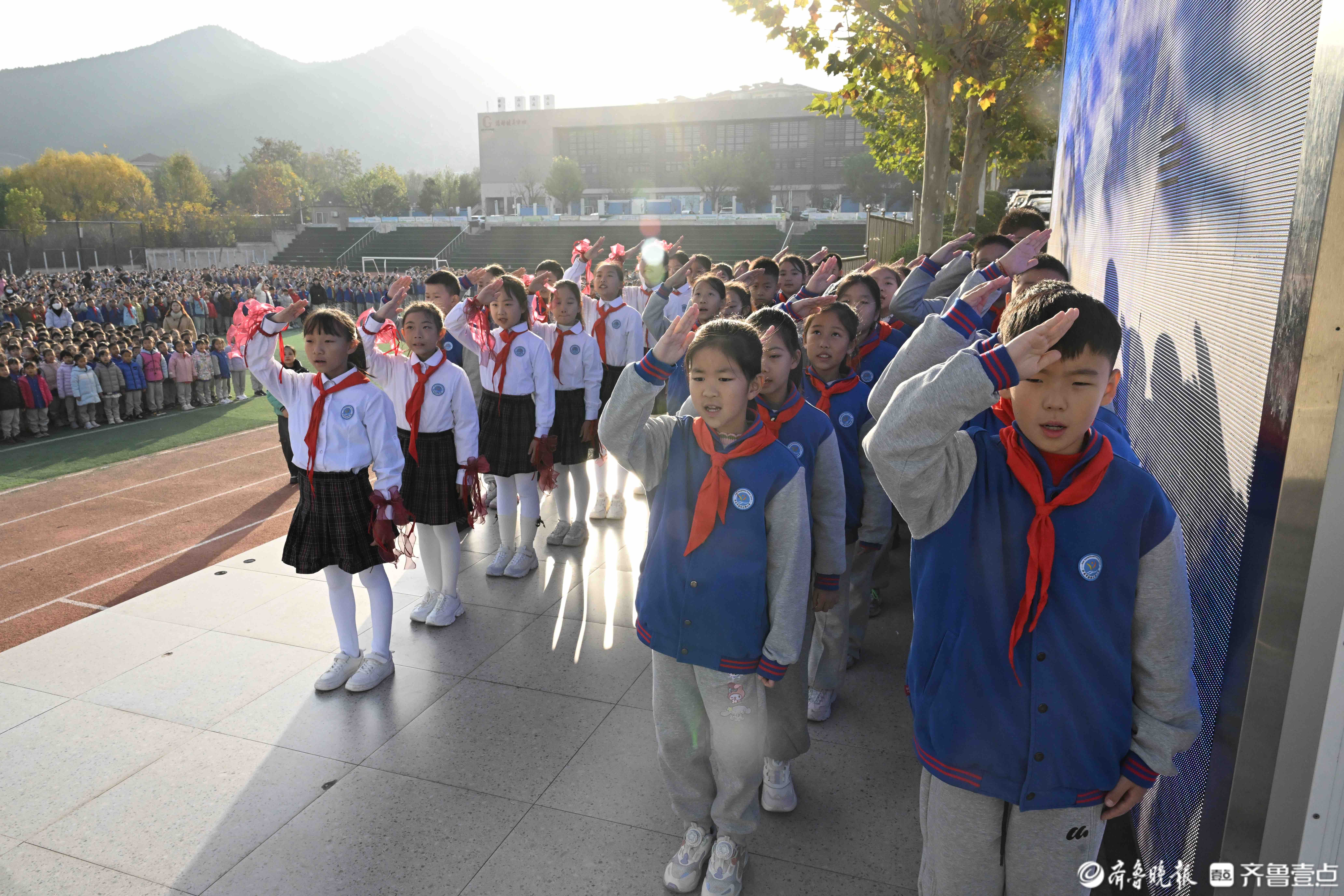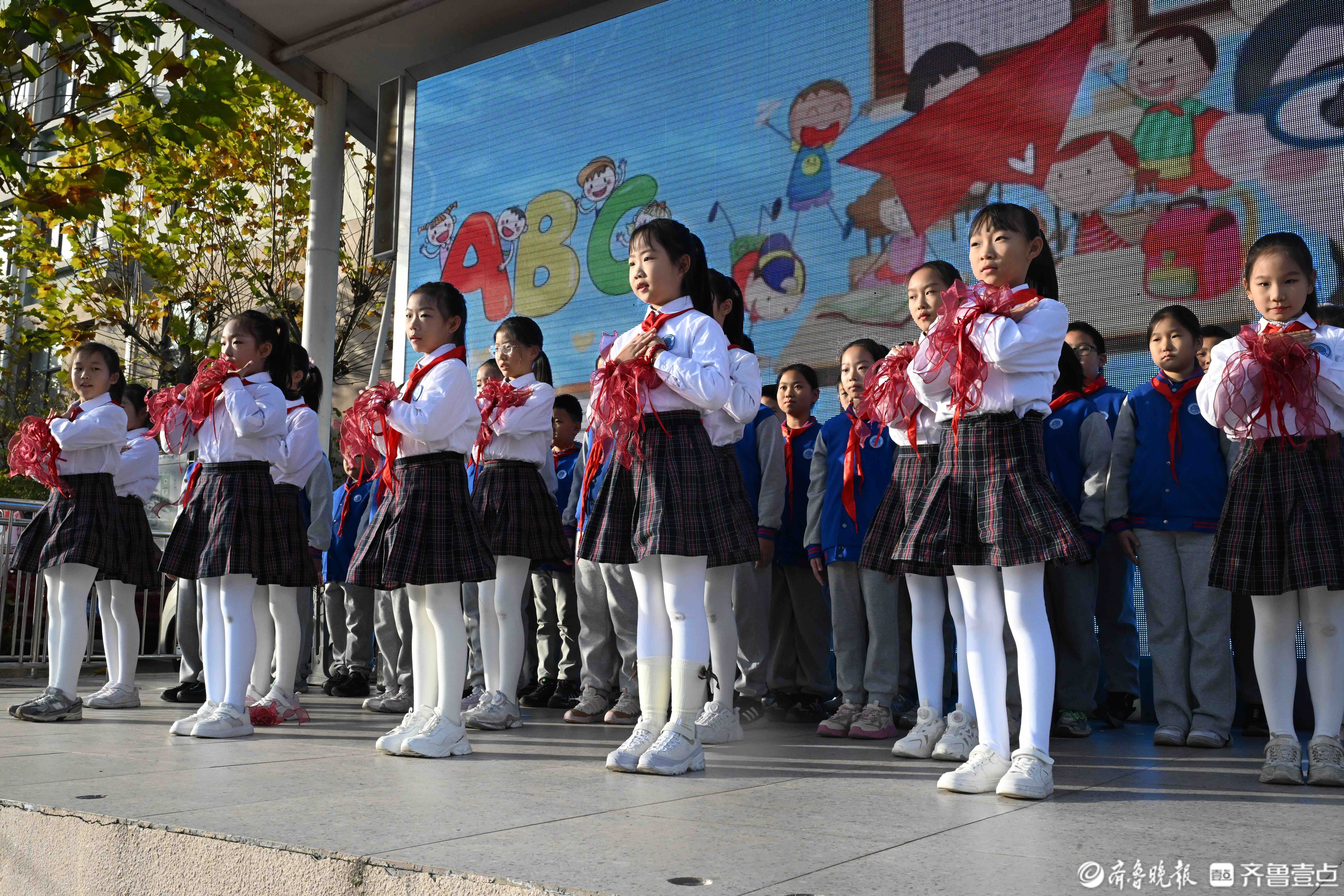 11月24日,在济南育秀中学小学部操场上,五星红旗冉冉升起,全校师生迎着晨光行注目礼和队礼。当日升旗仪式由四(2)中队承担,主题是感恩之心与你同行。主席台上,四(2)中队为全校师生带来了充满力量与温暖的舞蹈《让爱传出去》,诗歌朗诵《感恩有你》和手势舞《有你就幸福》,希望同学们带着感恩之心,勇敢前行温暖相伴。