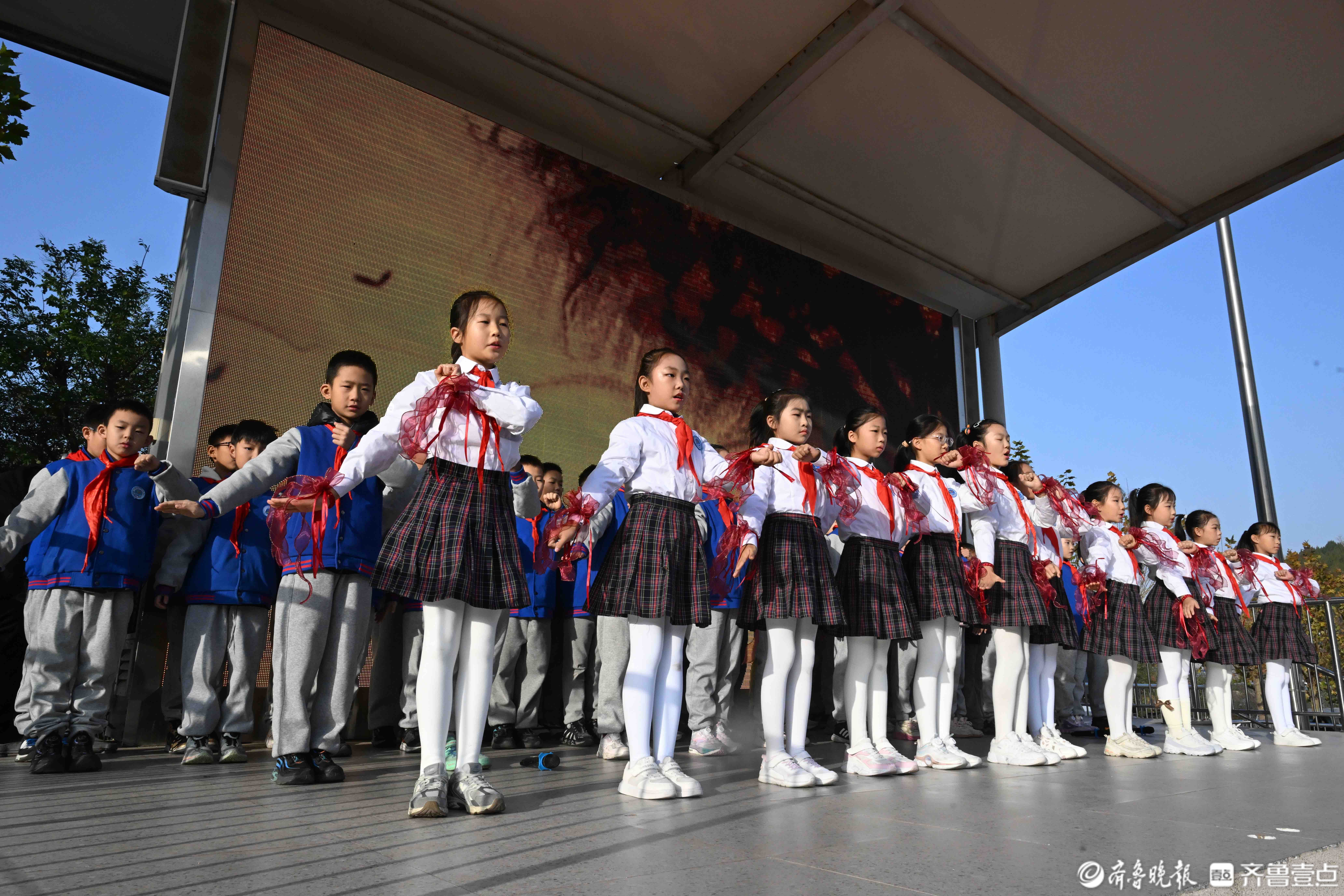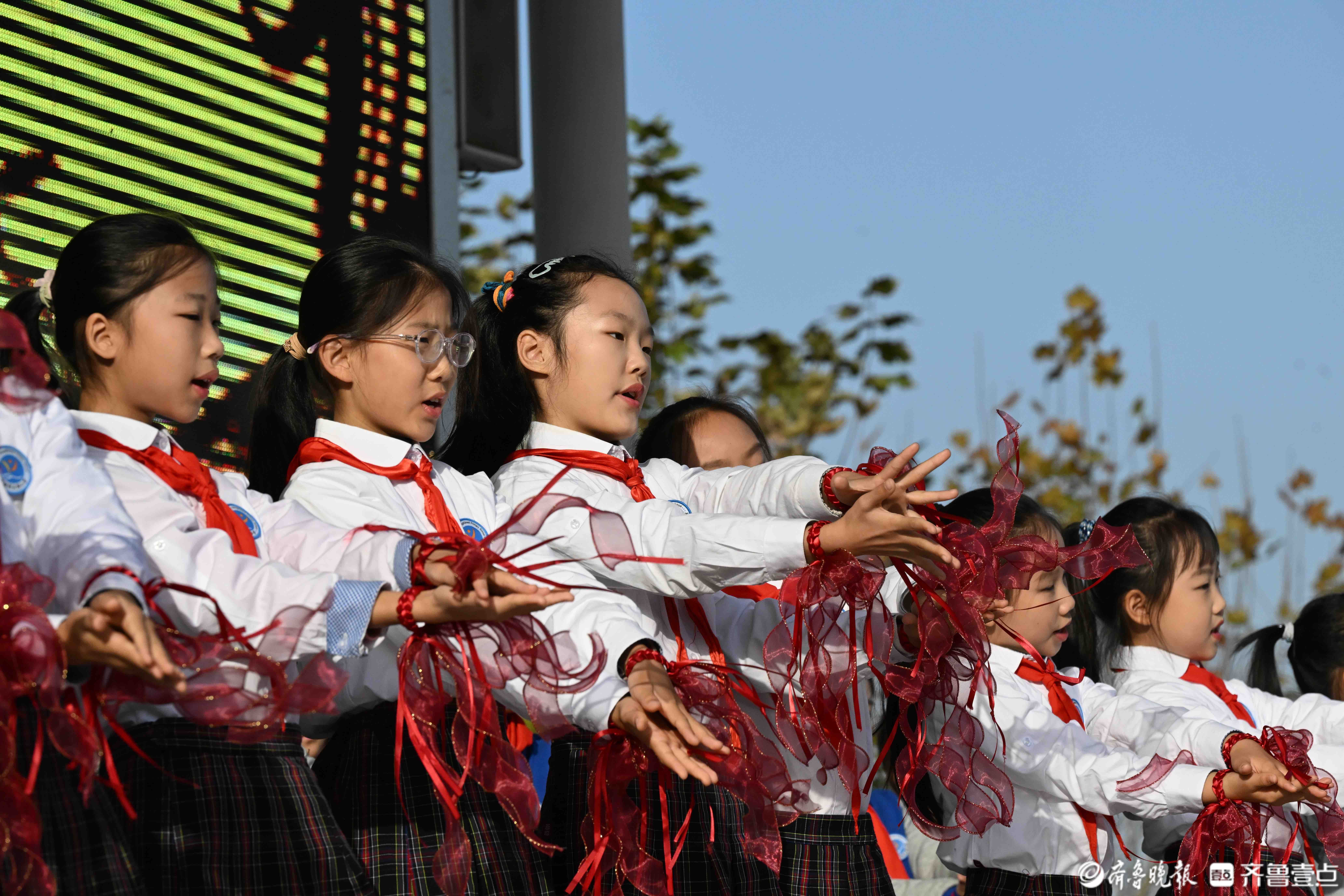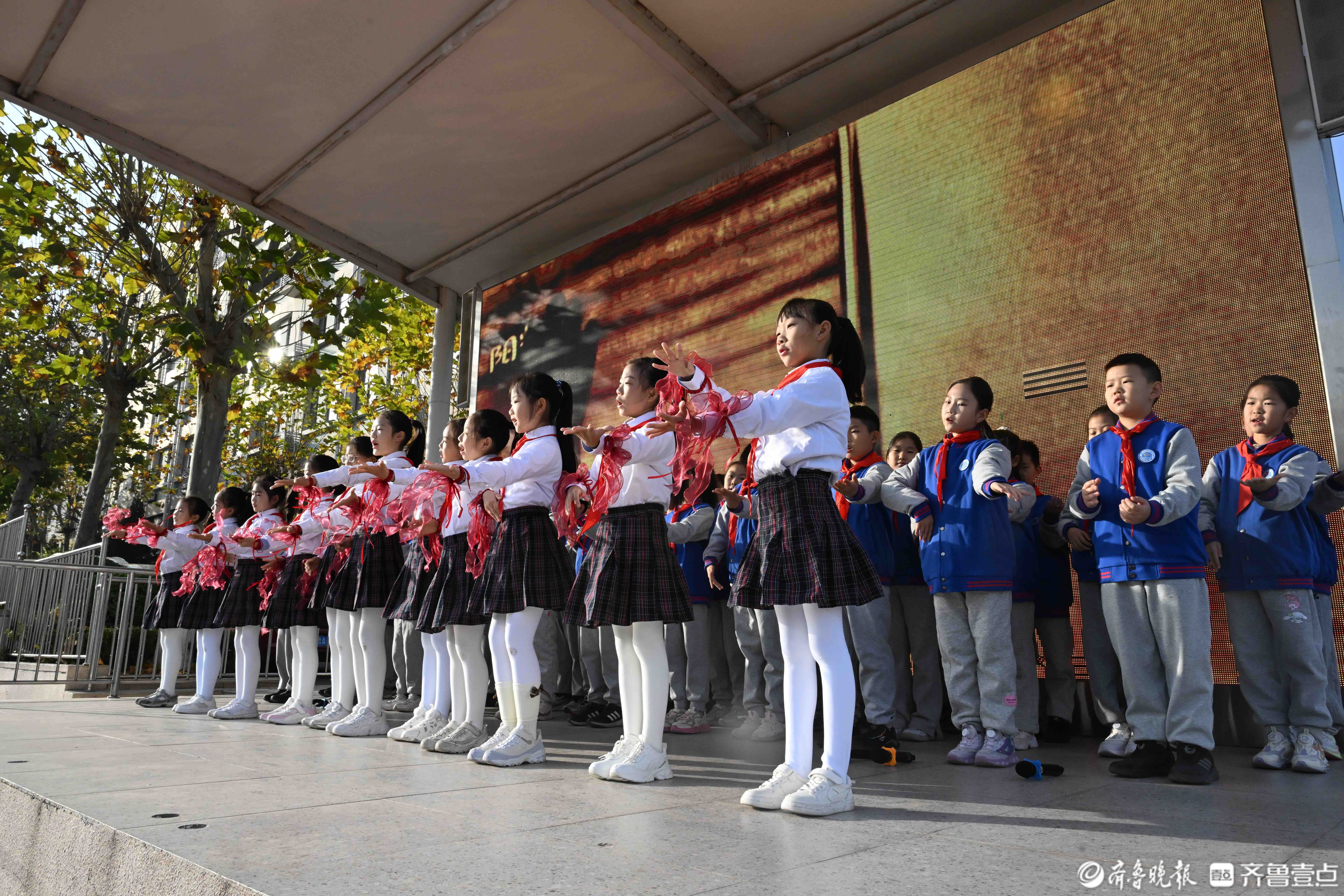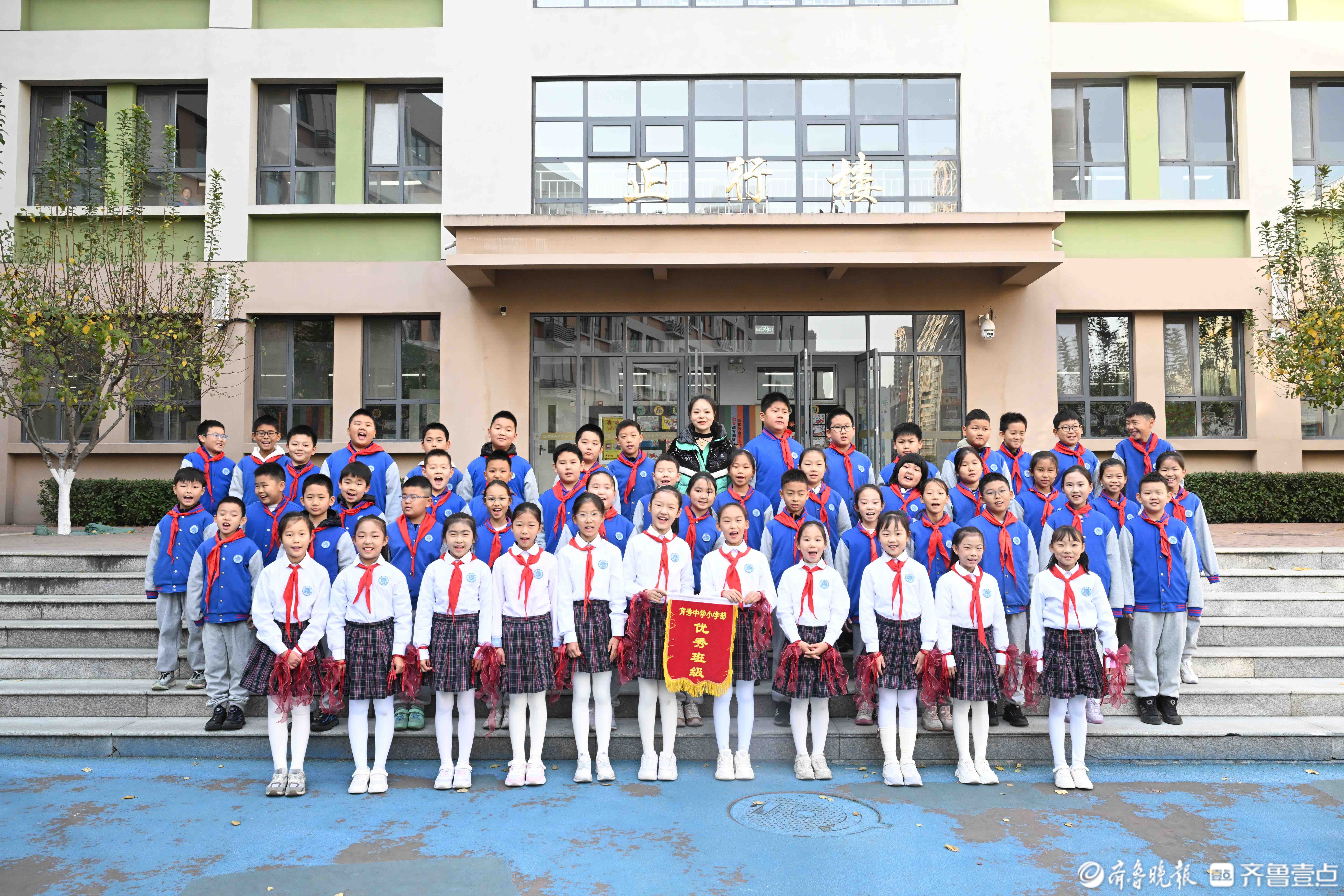11月24日,在济南育秀中学小学部操场上,五星红旗冉冉升起,全校师生迎着晨光行注目礼和队礼。当日升旗仪式由四(2)中队承担,主题是感恩之心与你同行。主席台上,四(2)中队为全校师生带来了充满力量与温暖的舞蹈《让爱传出去》,诗歌朗诵《感恩有你》和手势舞《有你就幸福》,希望同学们带着感恩之心,勇敢前行温暖相伴。