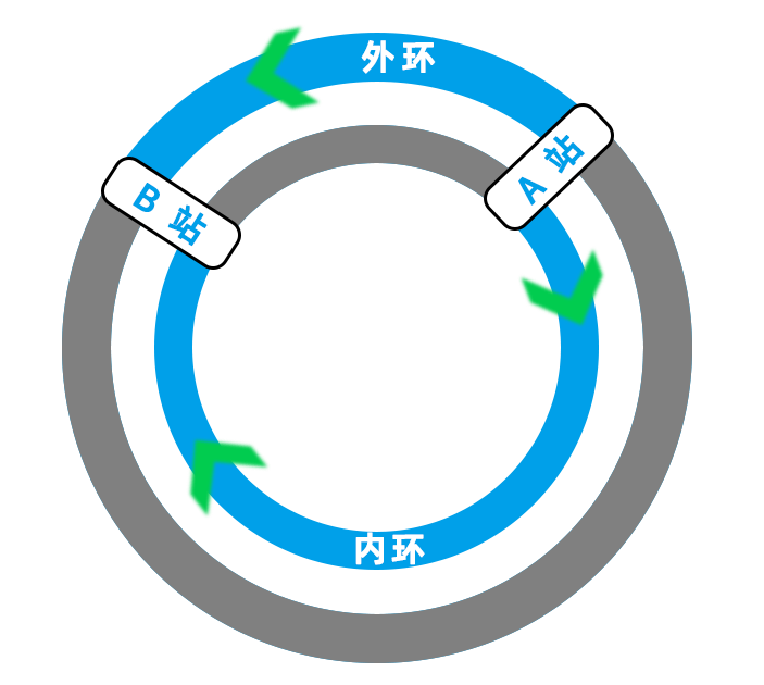 和传统轨道交通不一样,济南云巴线路呈“圆环”状,闭环运行,分为内环、外环两个相反方向。例如我们从A站到B站,就可以选择乘坐外环,这样出行效率更高;若选乘内环,则会绕大圈,耗时更长。
