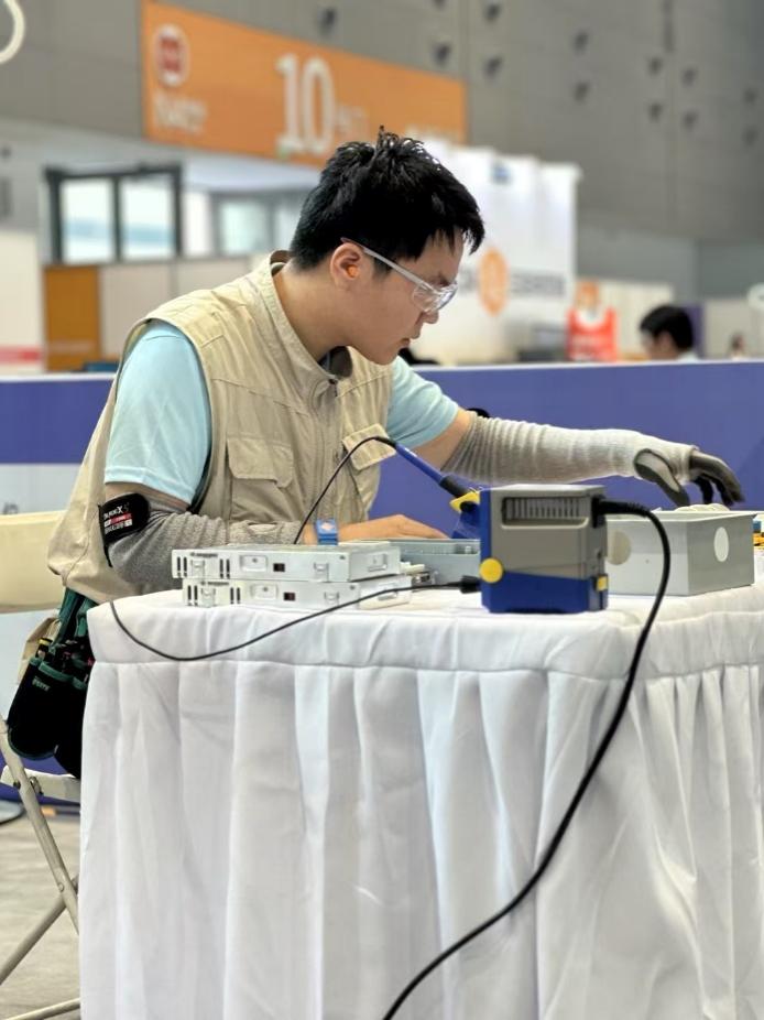 “实训室就是我的第二个家。”王硕回忆道。无数个日夜,当校园渐渐沉寂,实训室的灯光下总有他执着钻研的身影。电烙铁、万用表、示波器这些工具,从最初的陌生逐渐变成了他最亲密的“伙伴”。面对复杂的光电系统,他刻苦训练,眼睛熬红了也不放弃。“技能之路没有捷径,唯有坚持与汗水才能浇灌成功之花。”这是王硕的座右铭。