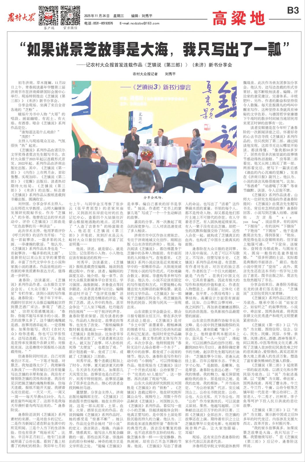 “如果说景芝故事是大海,我只写出了一瓢”——记农村大众报首发连载作品《芝镇说(第三部)》(未济)新书分享会