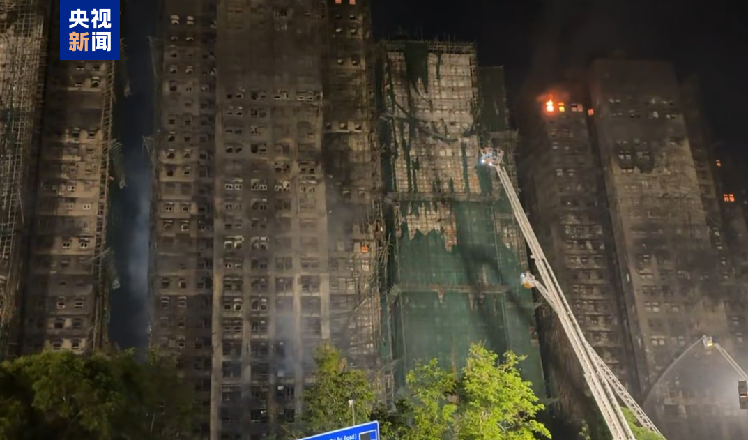 11月26日下午,香港新界大埔屋邨宏福苑多栋住宅楼发生火灾,造成重大人员伤亡。(央视新闻)