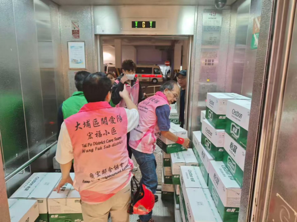 大埔关爱队队员、区议员林奕权介绍,很多组织和个人自发捐赠物资,危难时刻体现了大家的团结和互相关爱。