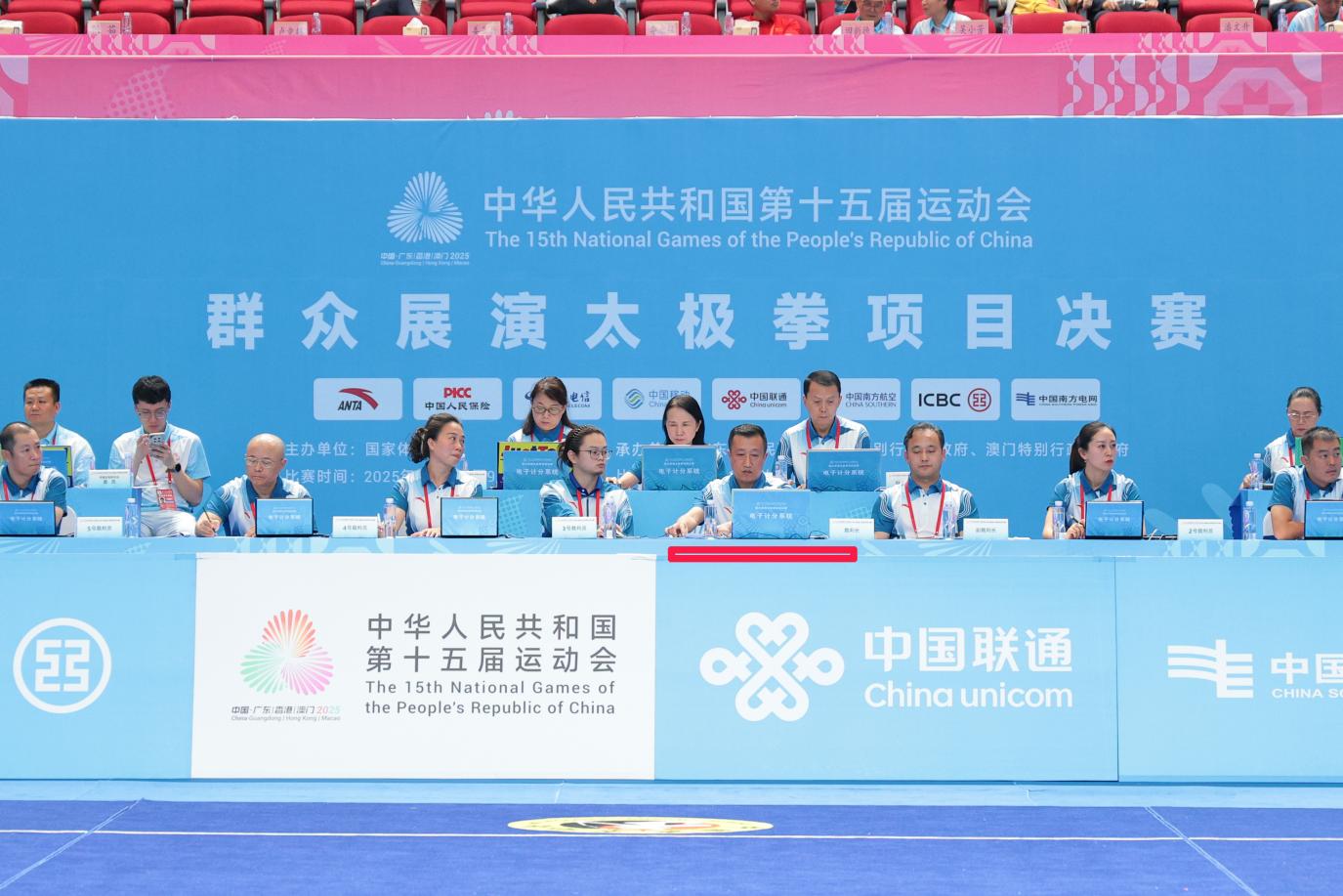 2025年第十五届全运会于11月9日至21日在粤港澳三地举行。山东中医药大学三位国际级、国家级裁判员牛振华、王利、于健亮相全运会赛场。