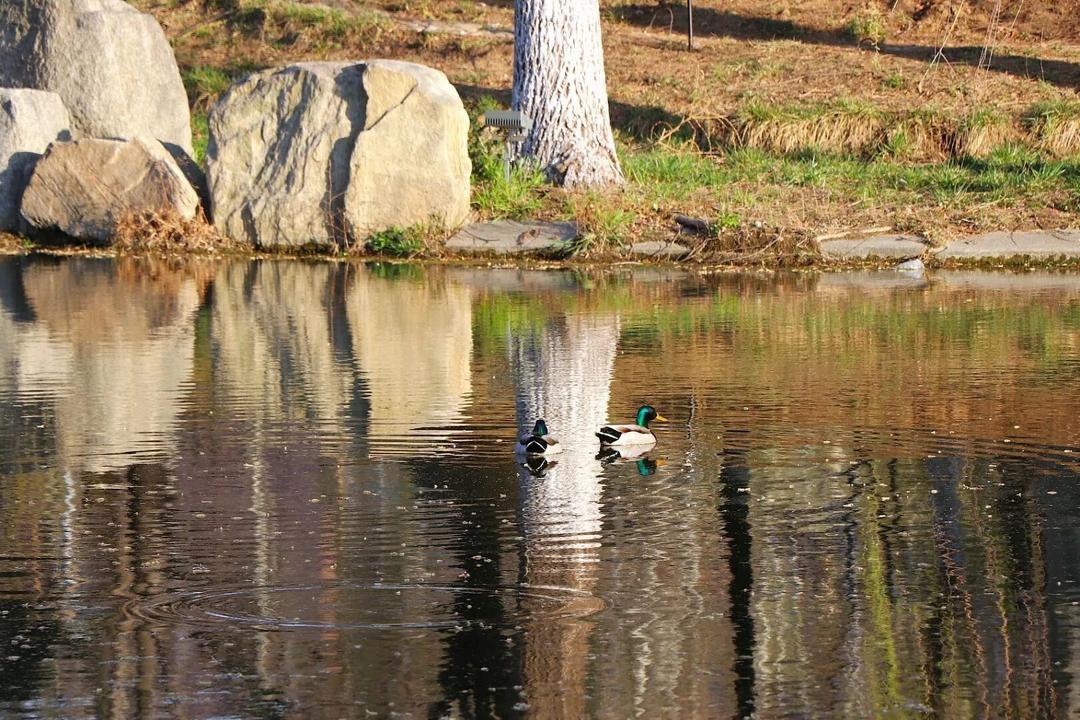 初秋季节,在山东财经大学东方学院凤凰河水畔,迎来了一批可爱的“新居民”——柯尔鸭、琵琶鸭、针尾鸭、麻鸭、红头潜鸭以及优雅的黑天鹅。它们或成群结队悠然栖息于岸边,或拨动清波嬉戏水间,清脆的鸣叫与优雅的身姿生动诠释着生物多样性之美,为校园增添了一抹灵动的野趣,也为师生观察自然、理解生态规律、培养生态素养提供了宝贵窗口。课间课后,常有师生驻足河畔,在观察这些“生态代言人”的过程中,感受人与自然和谐相处的真谛。