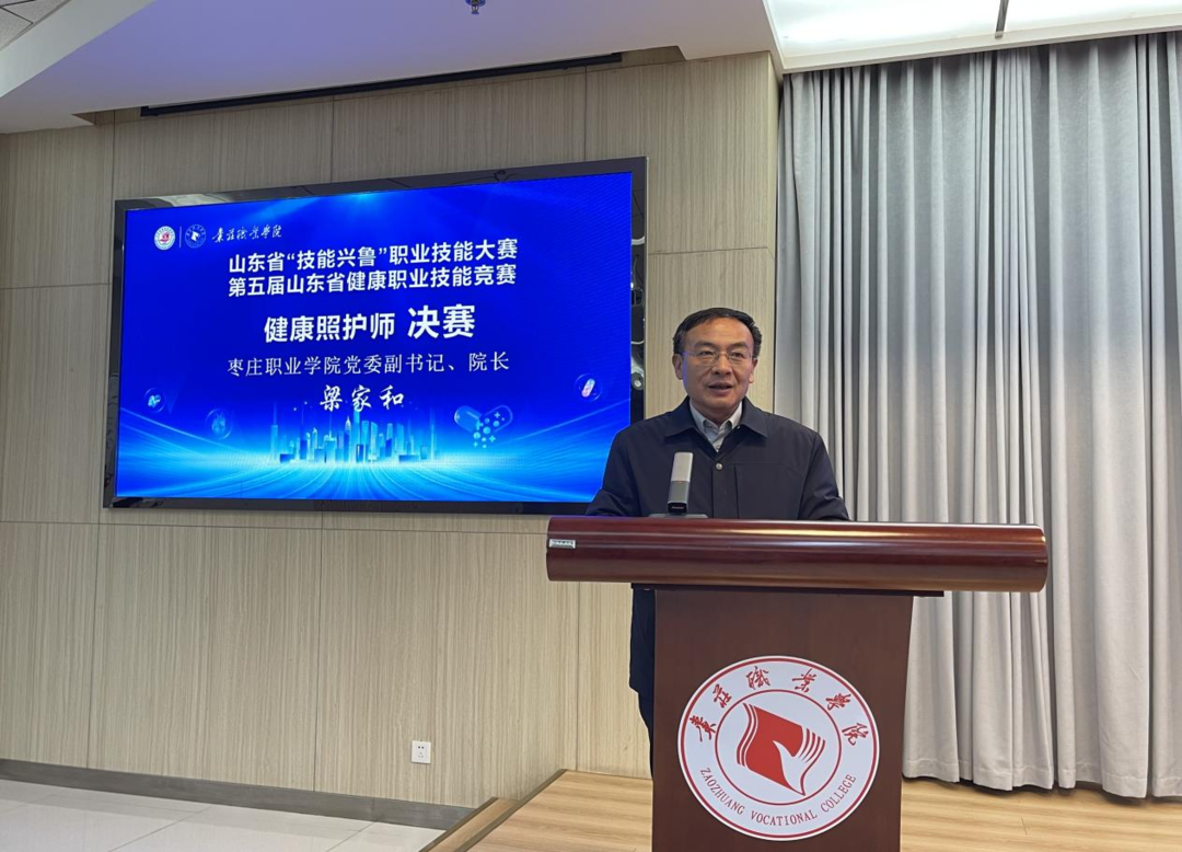 近日,山东省“技能兴鲁”职业技能大赛——第五届山东省健康职业技能竞赛“健康照护师”赛项在枣庄职业学院圆满闭幕。学院党委副书记、校长梁家和,党委委员、副校长刘希震,省健康管理协会副秘书长付新龙,裁判组组长沈荣等出席了闭幕式。