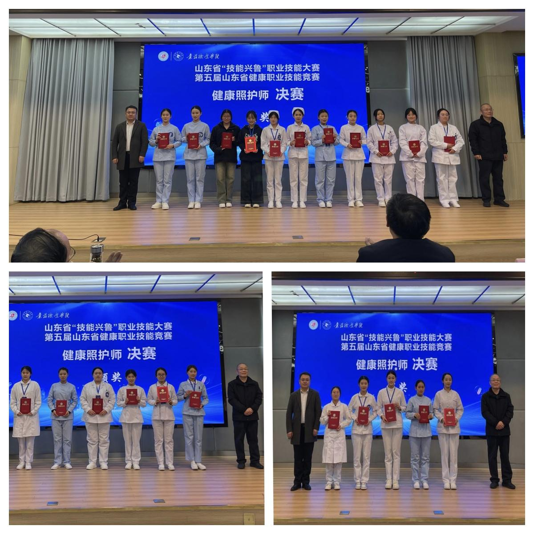 本次大赛由山东省人力资源和社会保障厅组织部署,健康管理协会主办,枣庄职业学院承办。赛事期间,学院精心筹备、周密安排,为参赛选手提供了优良的竞赛环境。全体裁判严格遵守规程,公正执裁,参赛选手则沉着应战,精益求精,充分展现了扎实的专业功底和良好的职业素养。经过激烈角逐,我院师生表现优异,共获得教师组一等奖2项、二等奖1项、三等奖3项;学生组一等奖2项、二等奖1项,充分彰显了我校在健康照护领域的教学实力与育人成果。