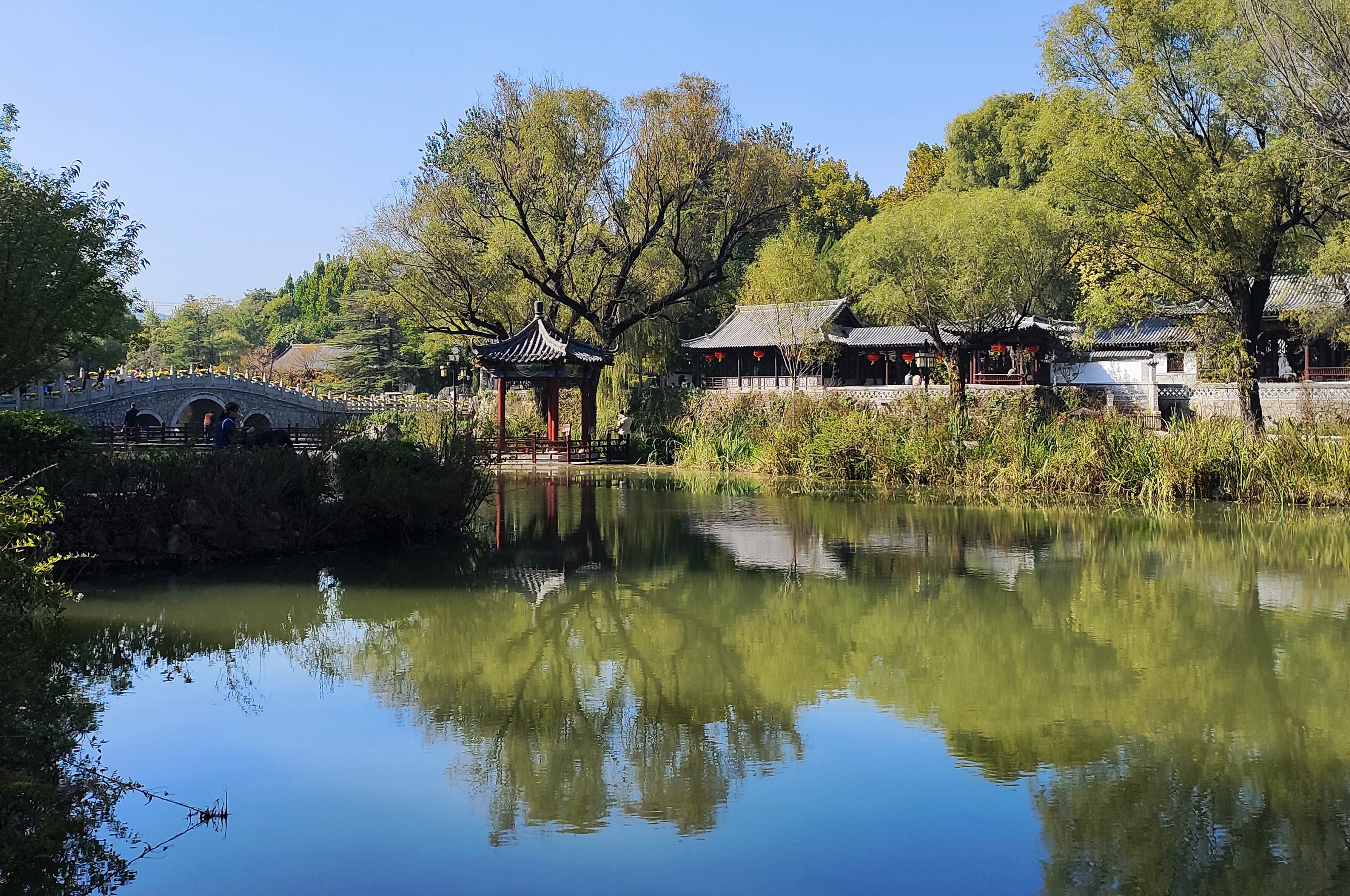 山东潍坊青州范公亭公园,聚焦初冬时节的古城景致。李清照纪念堂旁的古槐叶落满地,范仲淹手植的楸树叶片泛黄,倒映在“三贤祠”前的范公泉水面;岸边芦苇泛白,与红墙黛瓦的古建筑相映,既有北方初冬的清旷,又含古城独有的人文温润。画面中的泉池、古亭与彩叶,还原了青州初冬的地域特色,既凸显了“东方古州”的历史质感,也让初冬的静谧与齐鲁文化底蕴相融。