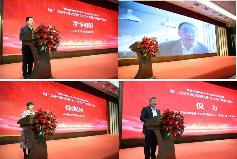 11月28日,由中国新闻史学会、山东大学主办,山东大学新闻传播学院、齐鲁理工学院承办的“第三届中国式现代化与文化‘两创’论坛”在济南举行。本届论坛主题为“智能传播时代中华文化的国际传播”。山东大学党委副书记李向阳,中国新闻史学会会长隋岩,齐鲁理工学院党委书记徐淑凤出席开幕式并致辞。