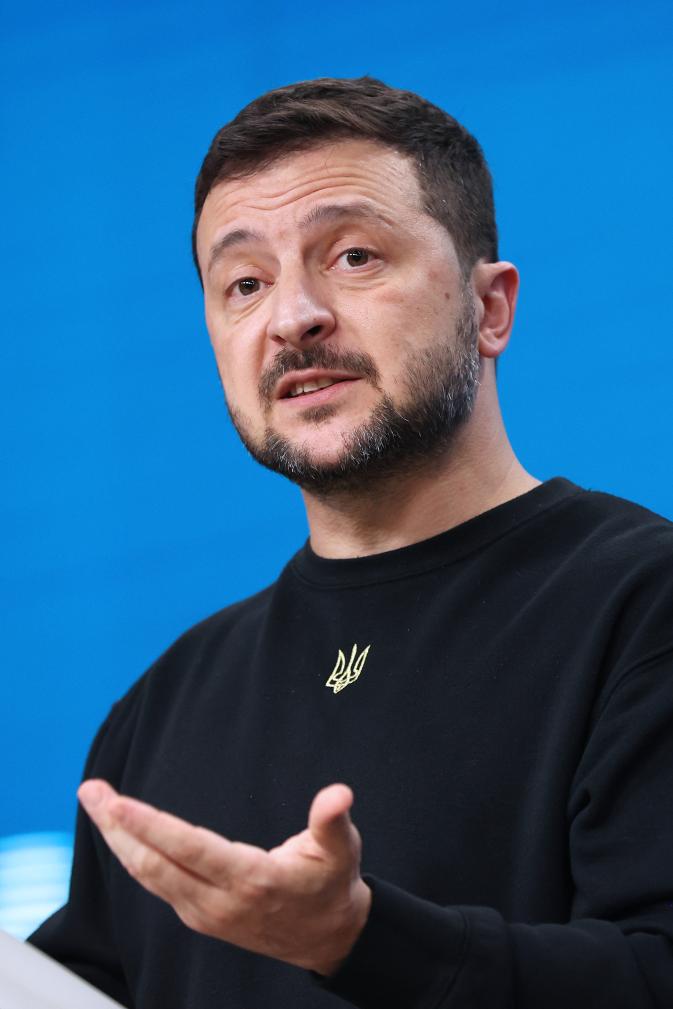 2024年10月17日,在比利时布鲁塞尔,乌克兰总统泽连斯基参加新闻发布会。 新华社记者赵丁喆摄