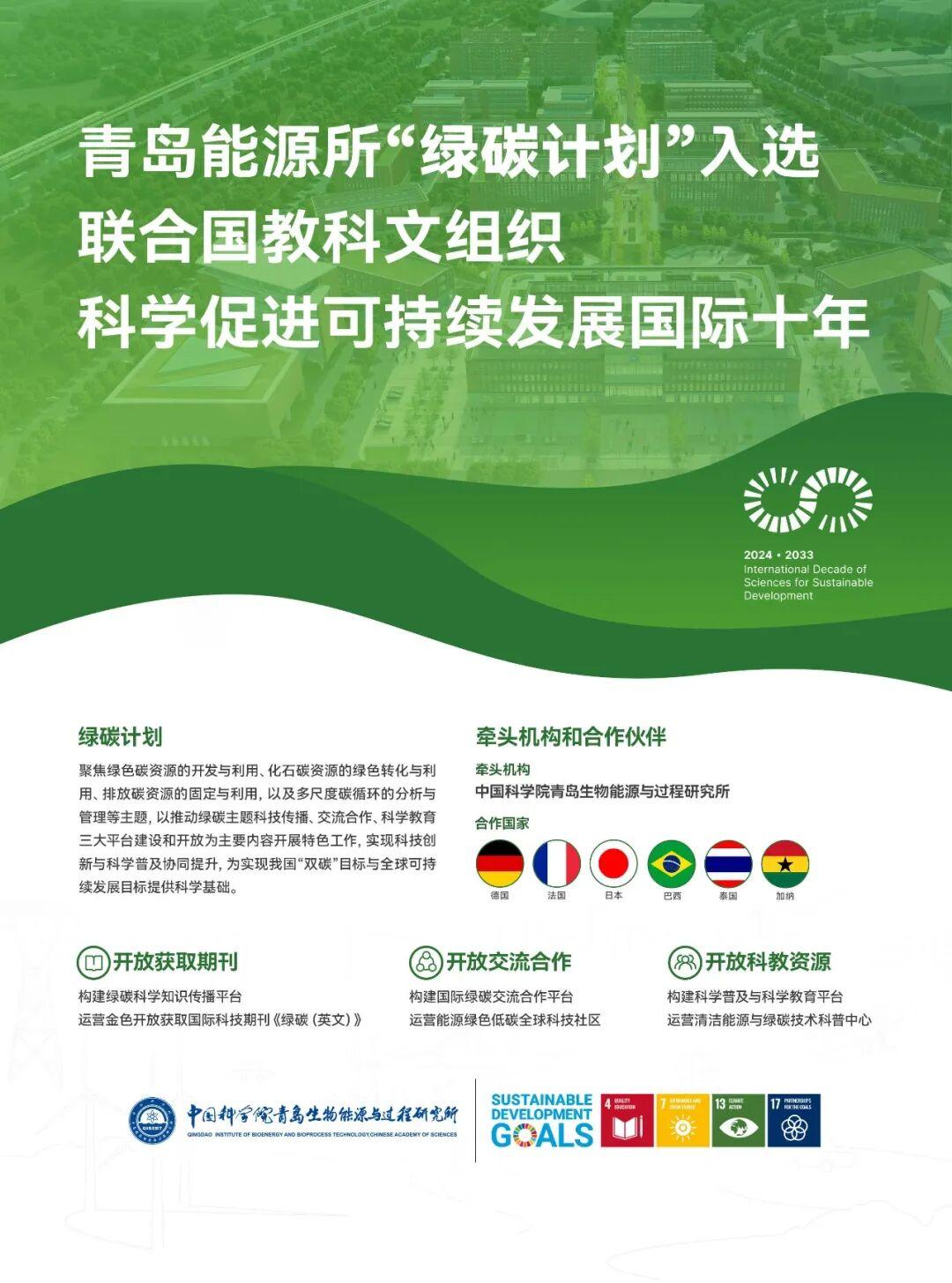 11月28日,中国科学院青岛能源所牵头的“绿碳计划”(Green Carbon Program)正式入选联合国教科文组织(UNESCO)2024年—2033年科学促进可持续发展国际科学十年(简称“科学十年”)实施倡议。