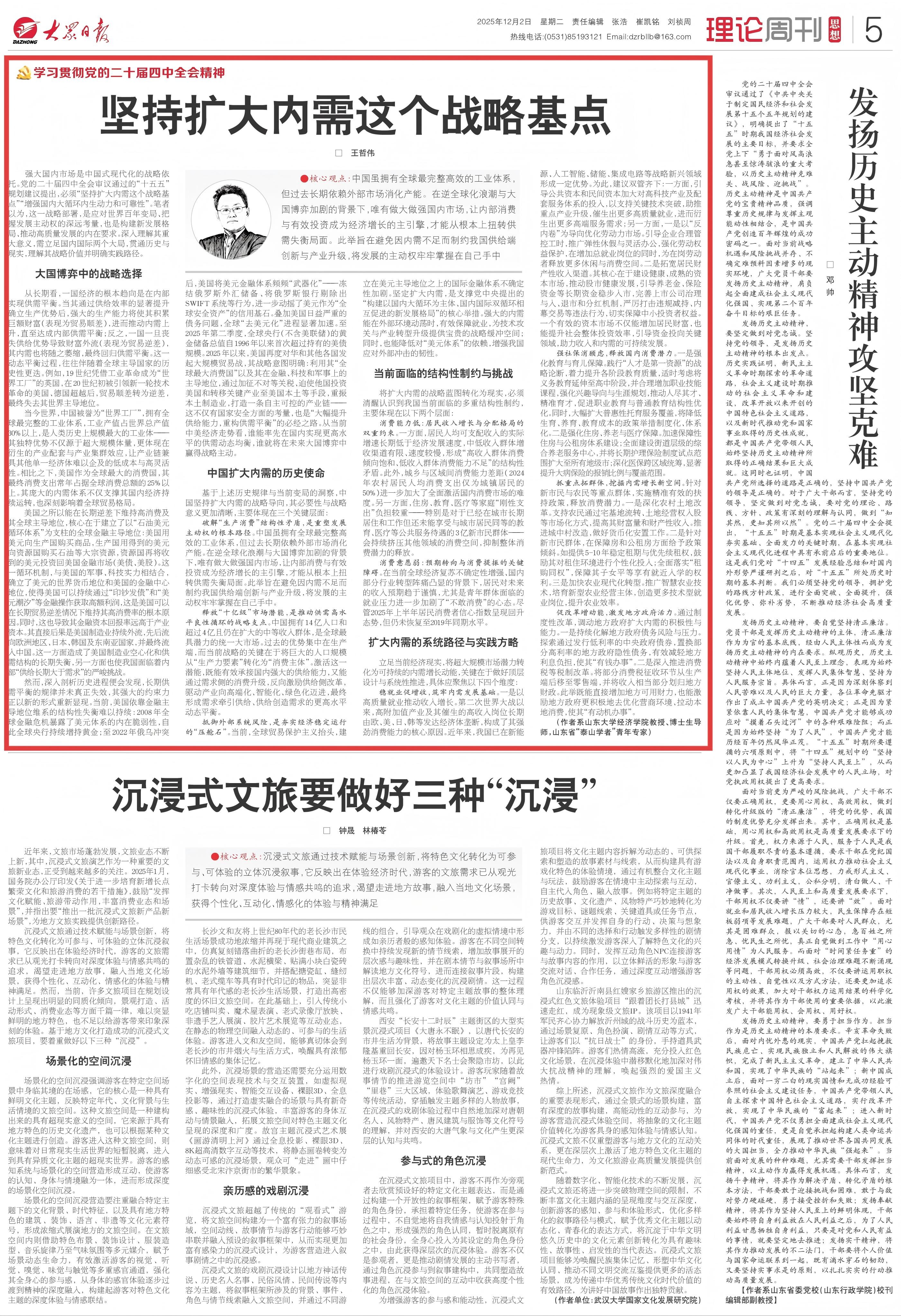 强大国内市场是中国式现代化的战略依托。党的二十届四中全会审议通过的“十五五”规划建议提出,必须“坚持扩大内需这个战略基点”“增强国内大循环内生动力和可靠性”。笔者以为,这一战略部署,是应对世界百年变局、把握发展主动权的深远考量,也是构建新发展格局、推动高质量发展的内在要求。深入理解其重大意义,需立足国内国际两个大局,贯通历史与现实,理解其战略价值并明确实践路径。