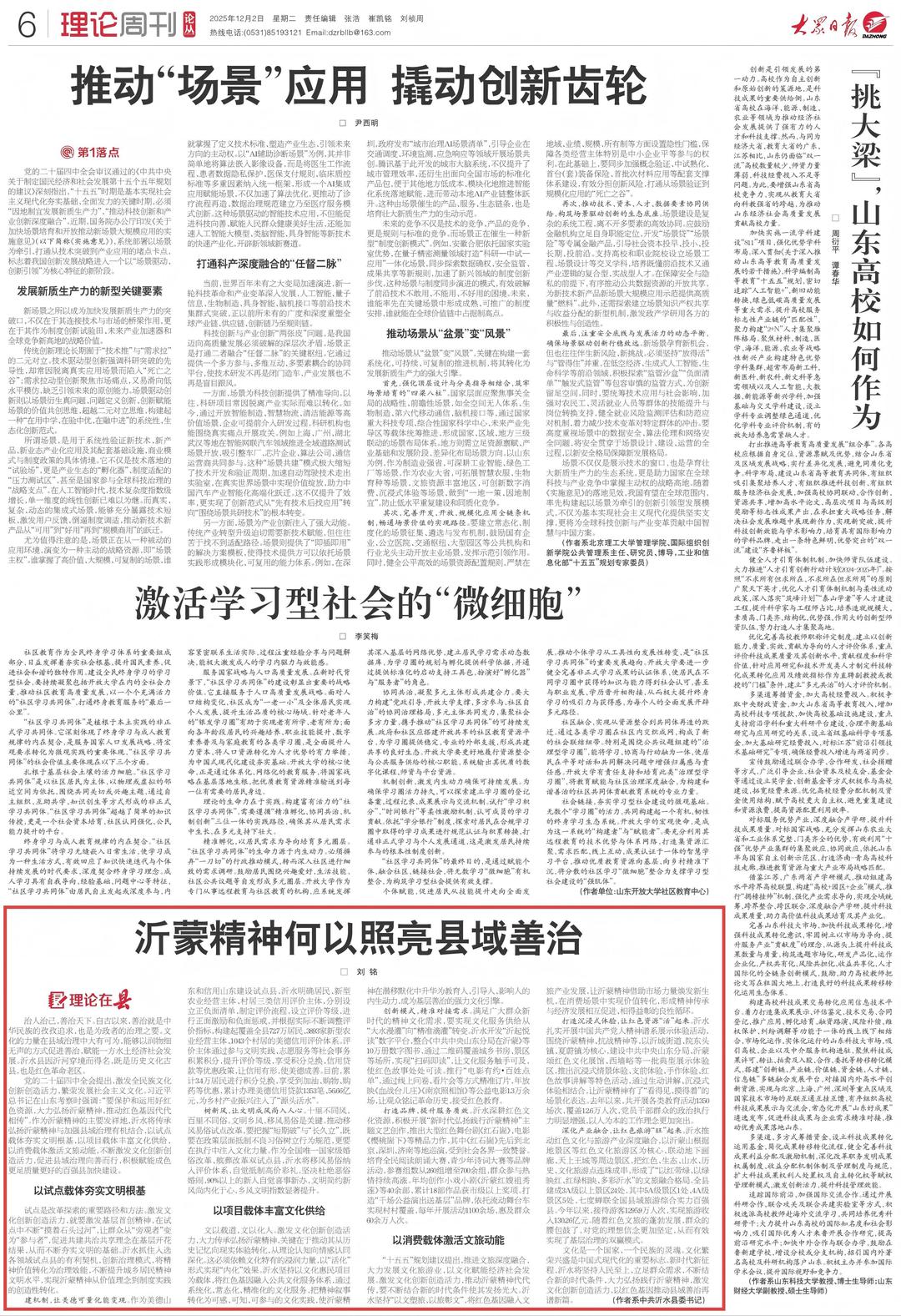 理论在“县”丨沂水县委书记刘铭:沂蒙精神何以照亮县域善治