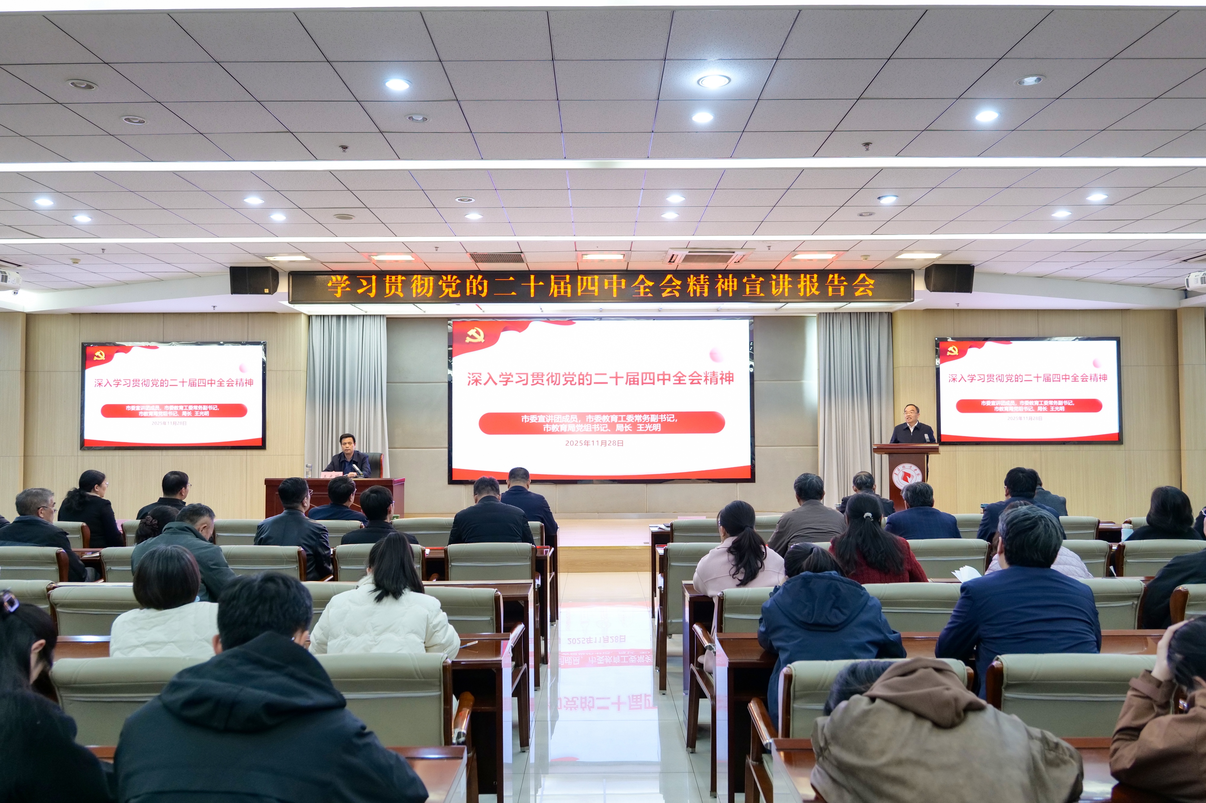 报告会上,王光明以《深入学习贯彻党的二十届四中全会精神》为题,从三个方面讲解了怎样准确把握“十五五”时期在基本实现社会主义现代化进程中的重要地位;从两个推动、一个确保,深刻领会“十五五”时期经济社会发展的指导方针和主要目标;从十二个方面全面理解“十五五”时期经济社会发展的战略任务和重大举措;从三个方面全面讲解了坚持和加强党的全面领导,凝聚起推进中国式现代化的磅礴力量;从学前教育、基础教育、职业教育擘画了深入贯彻落实党的二十届四中全会精神,扎实推进“十五五”时期教育强市建设。他对学院取得的成绩给予了充分肯定和鼓励。整场宣讲报告简洁明了、深入通透,讲得清、说得透、听得懂,也为下一步学院深入学习贯彻党的二十届四中全会精神、推进各项工作落实,奠定了坚实思想基础。